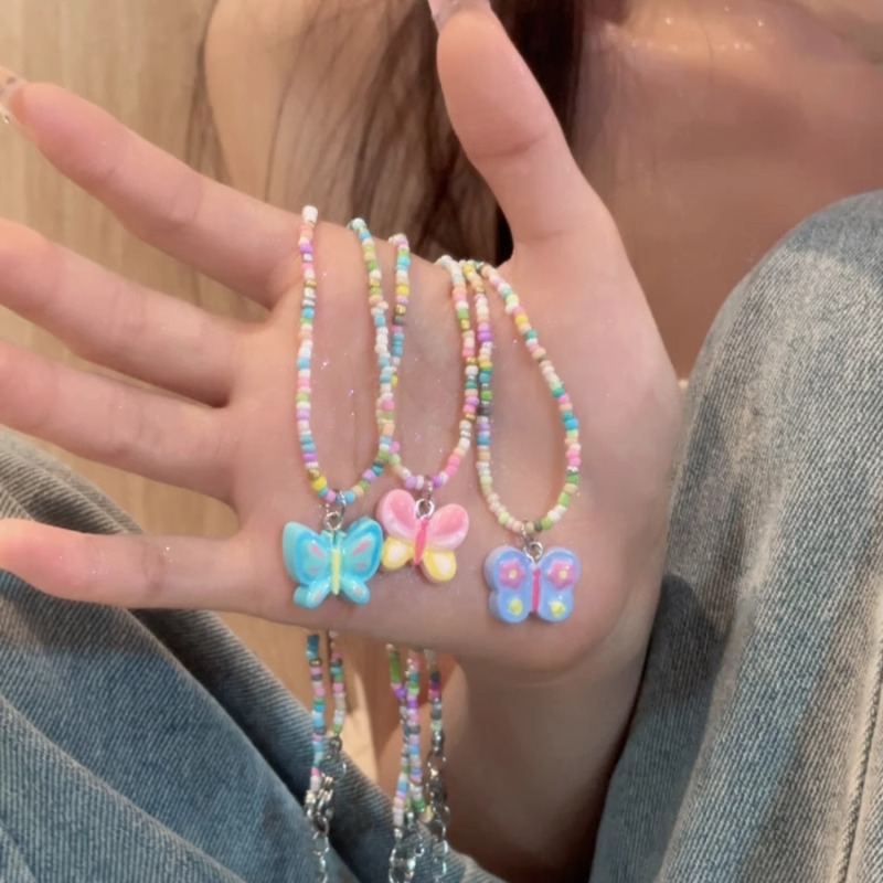 别样少女彩色蝴蝶串珠项链女甜美儿童夏日可爱卡通锁骨链潮