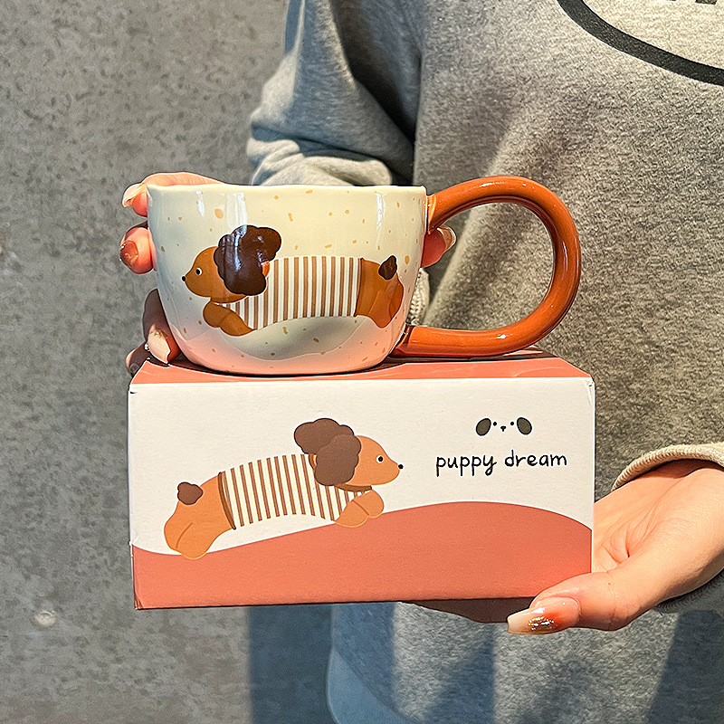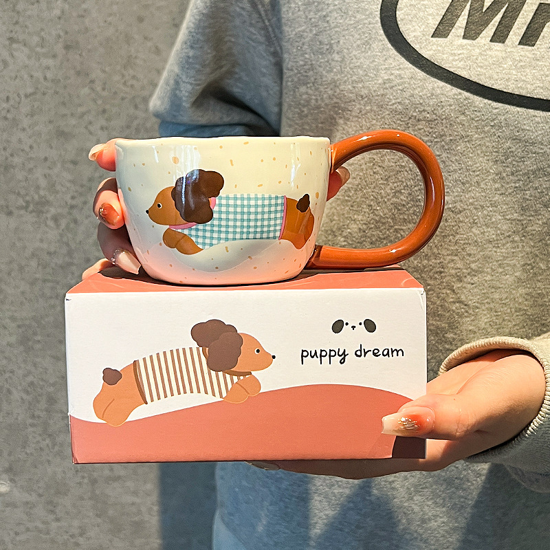 创意卡通小狗陶瓷马克杯个性简约家用办公室咖啡早餐杯学生牛奶杯