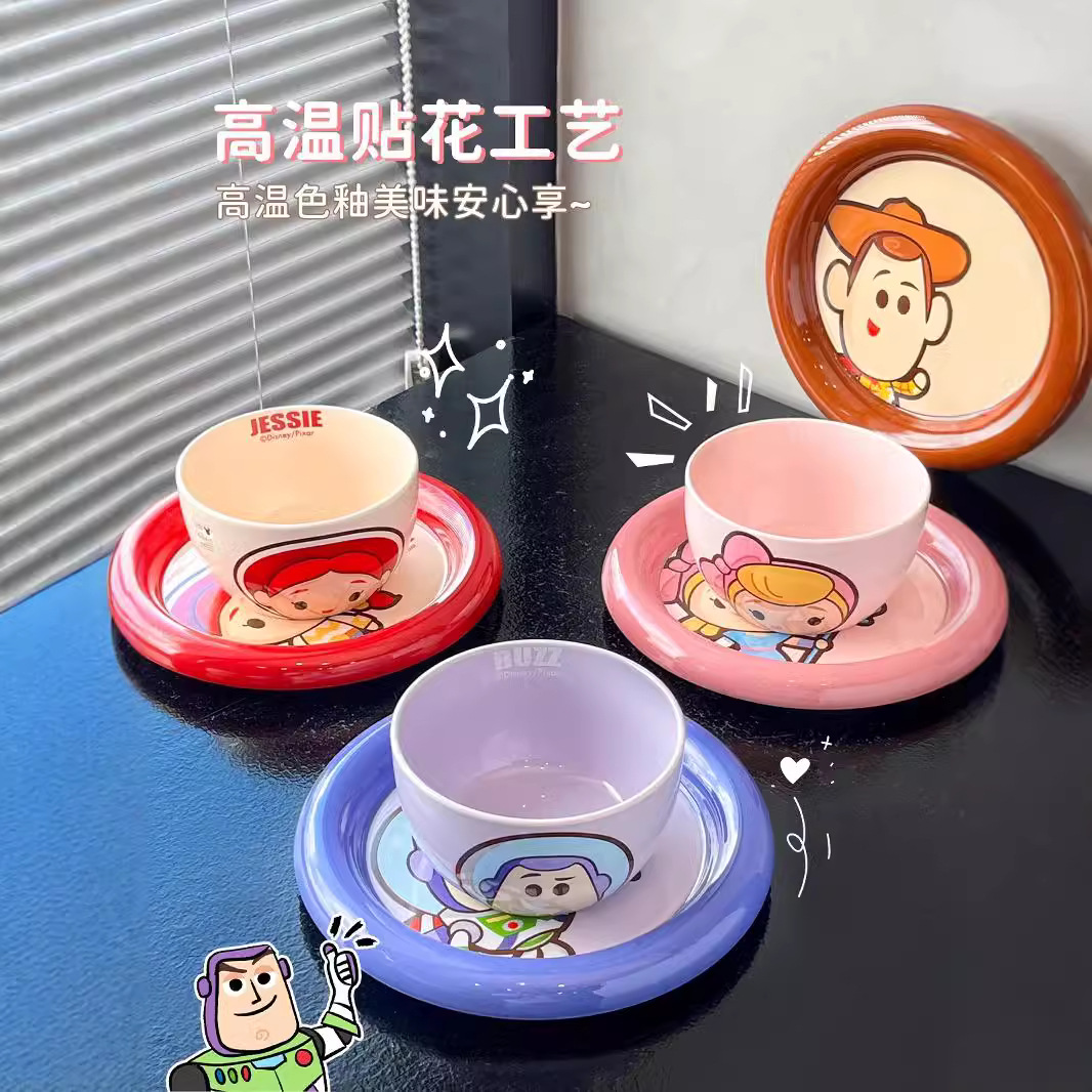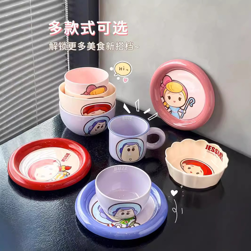 玩具总动员手柄碗家用巴斯光年网红餐具陶瓷碗带把手高颜值沙拉碗