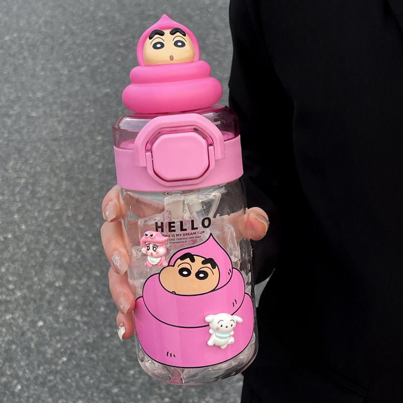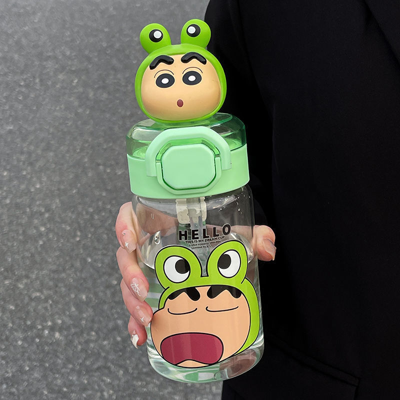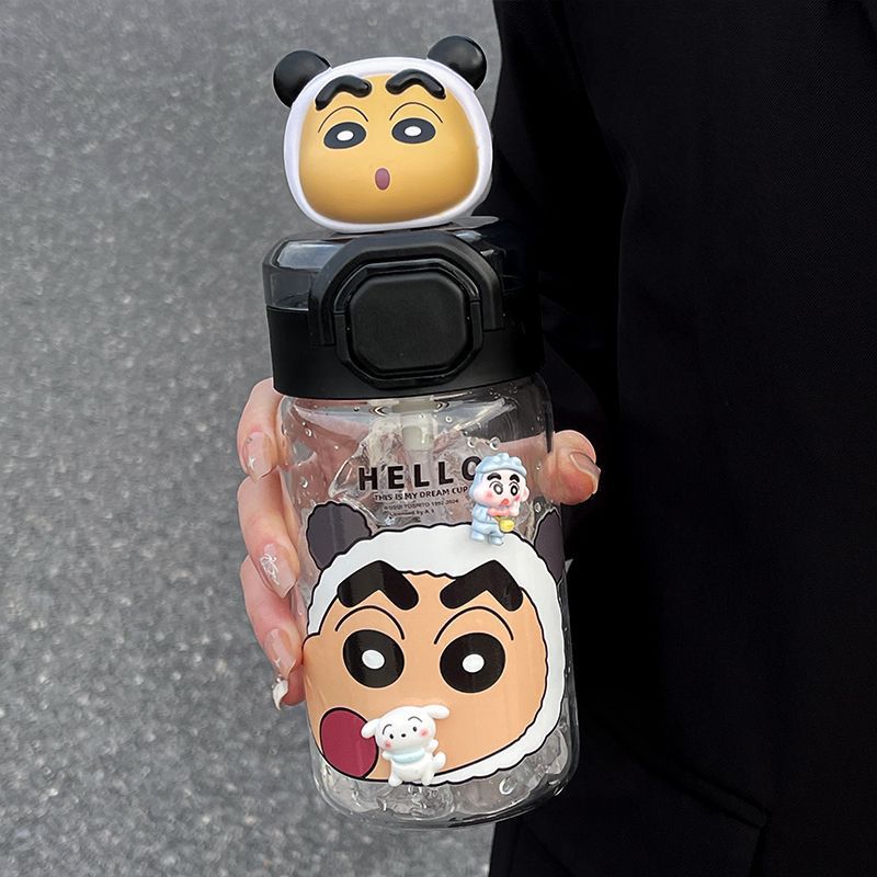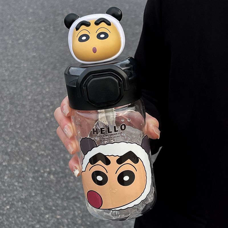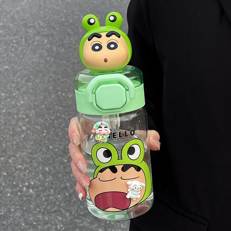 蜡笔小新玻璃水杯新款女生吸管杯高硼硅耐高温夏季杯子伴手礼