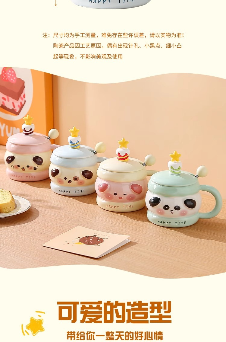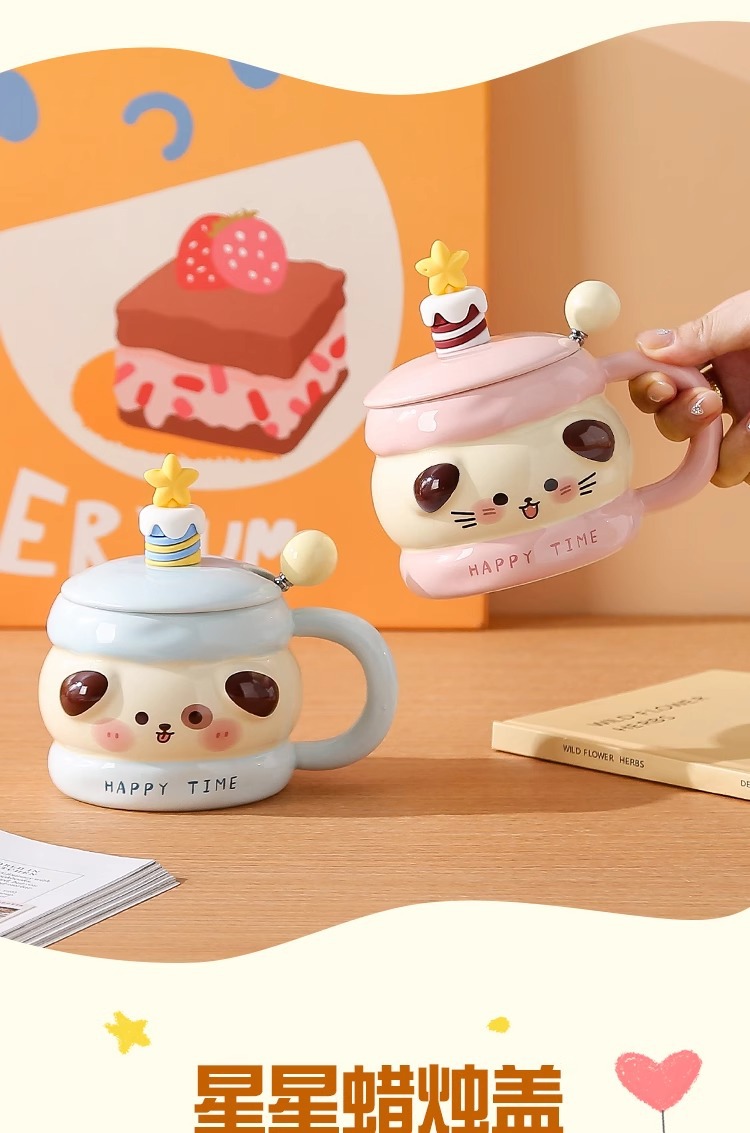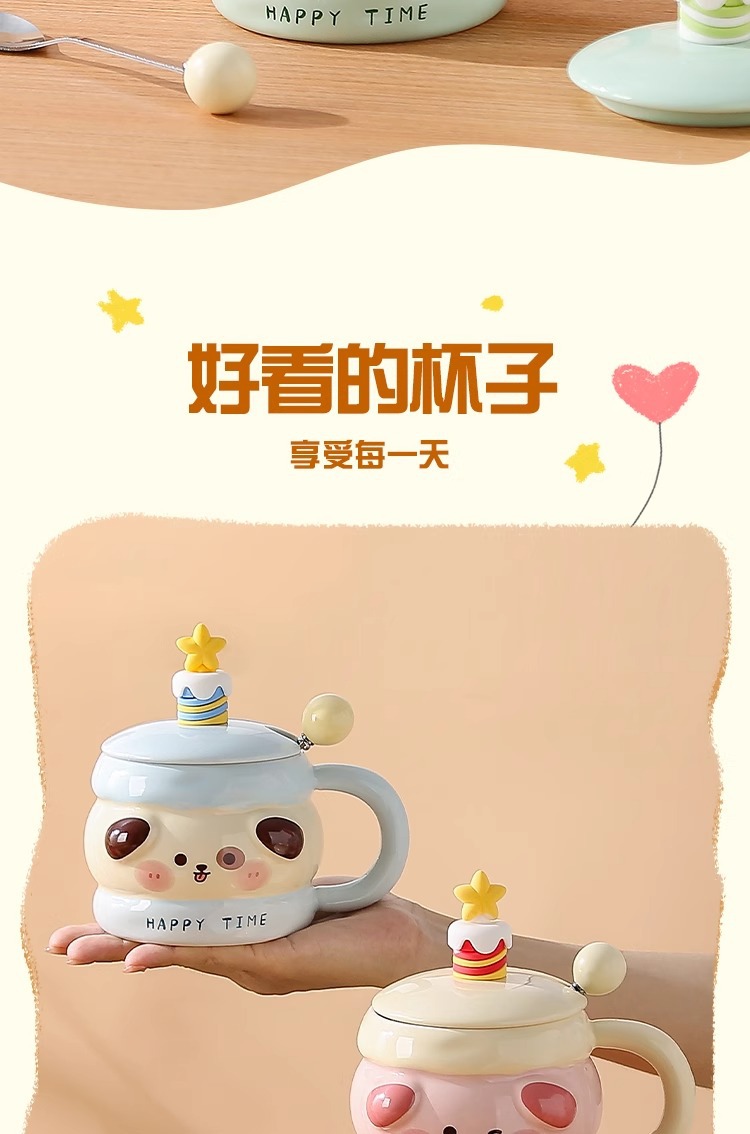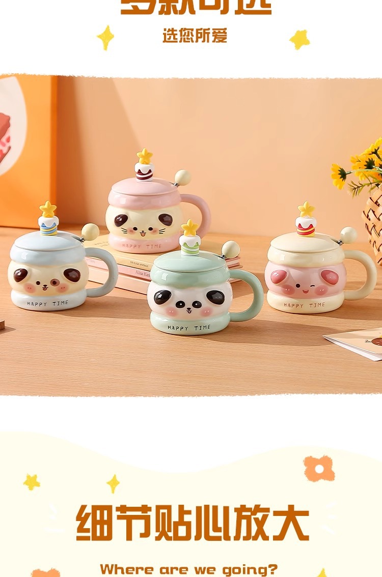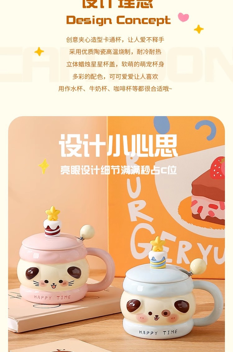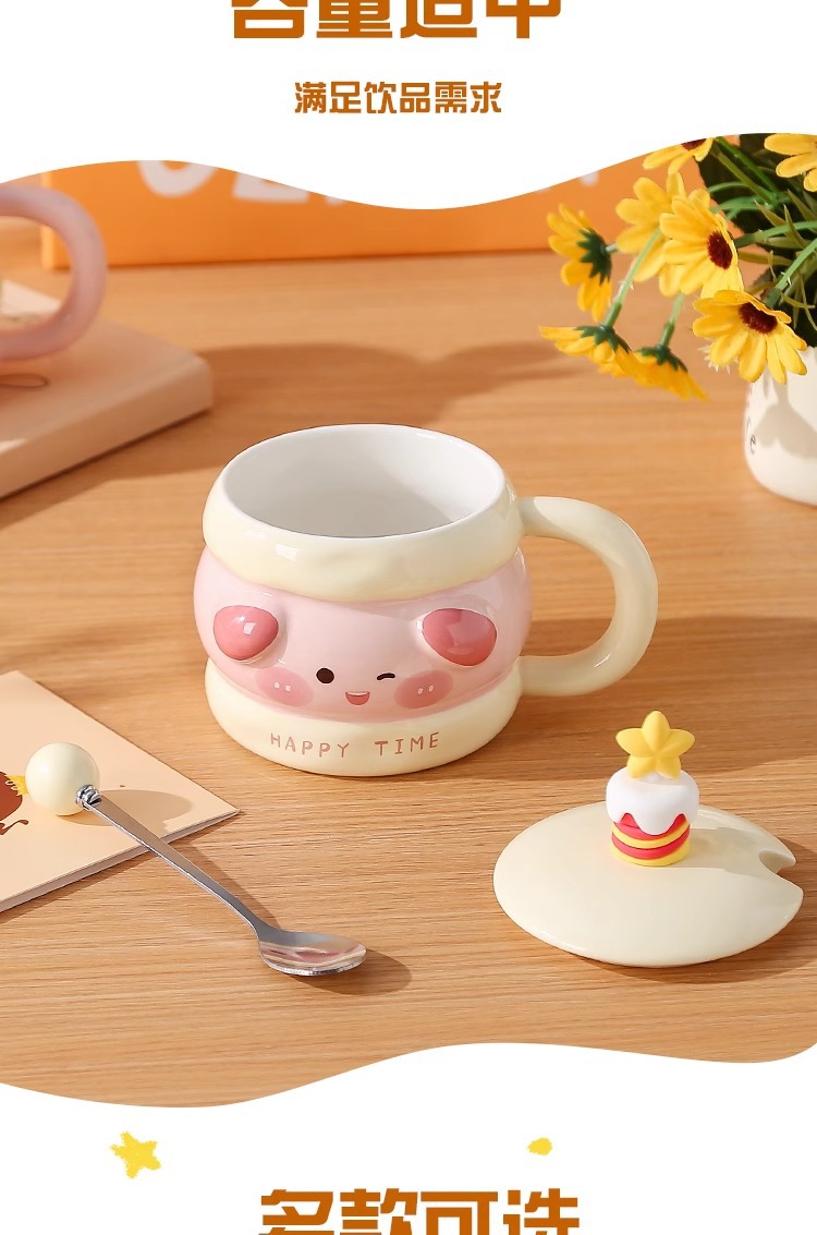 马克杯带盖勺可爱陶瓷水杯女高颜值情侣杯子大容量家用咖啡牛奶杯