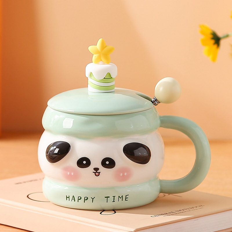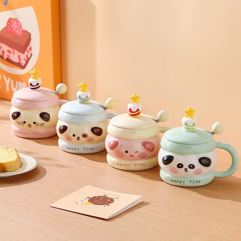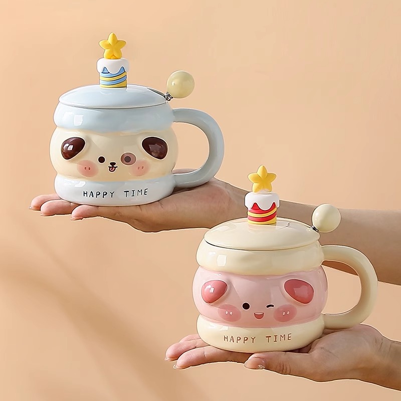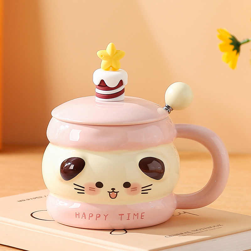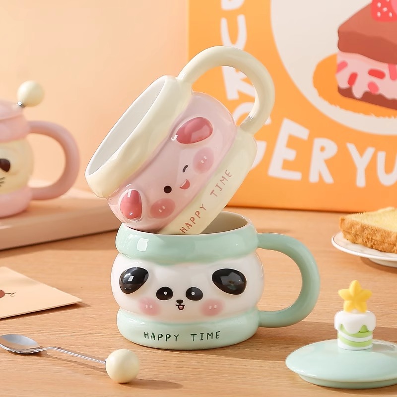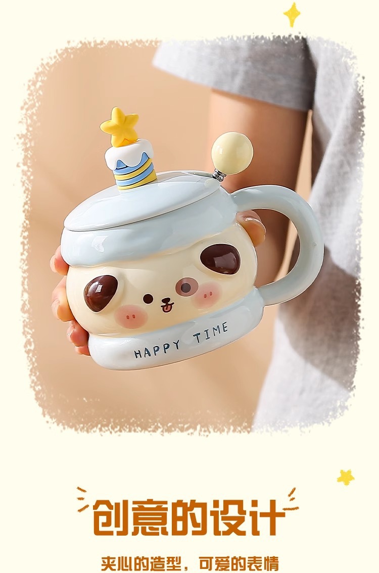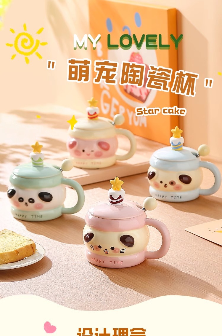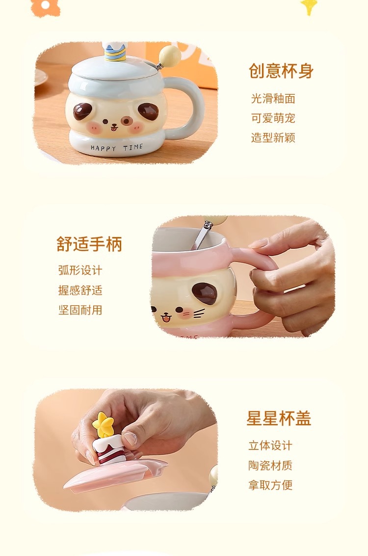 马克杯带盖勺可爱陶瓷水杯女高颜值情侣杯子大容量家用咖啡牛奶杯