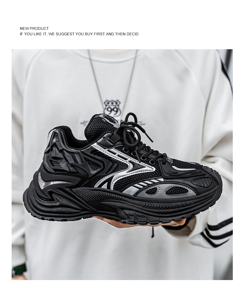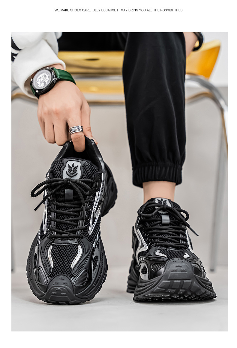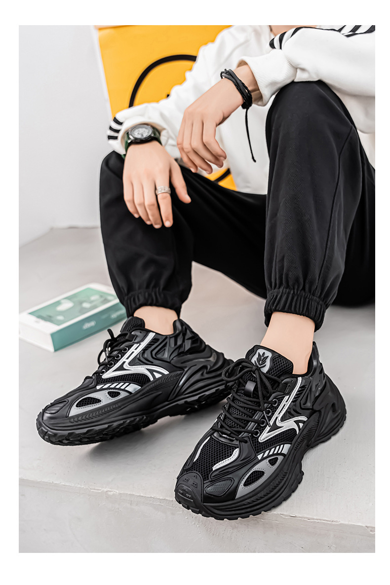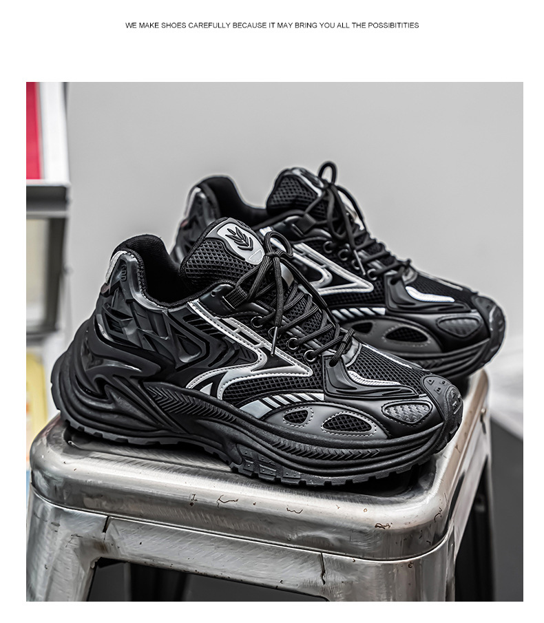 机甲网格透气休闲男鞋直播老爹鞋黑武士运动户外鞋