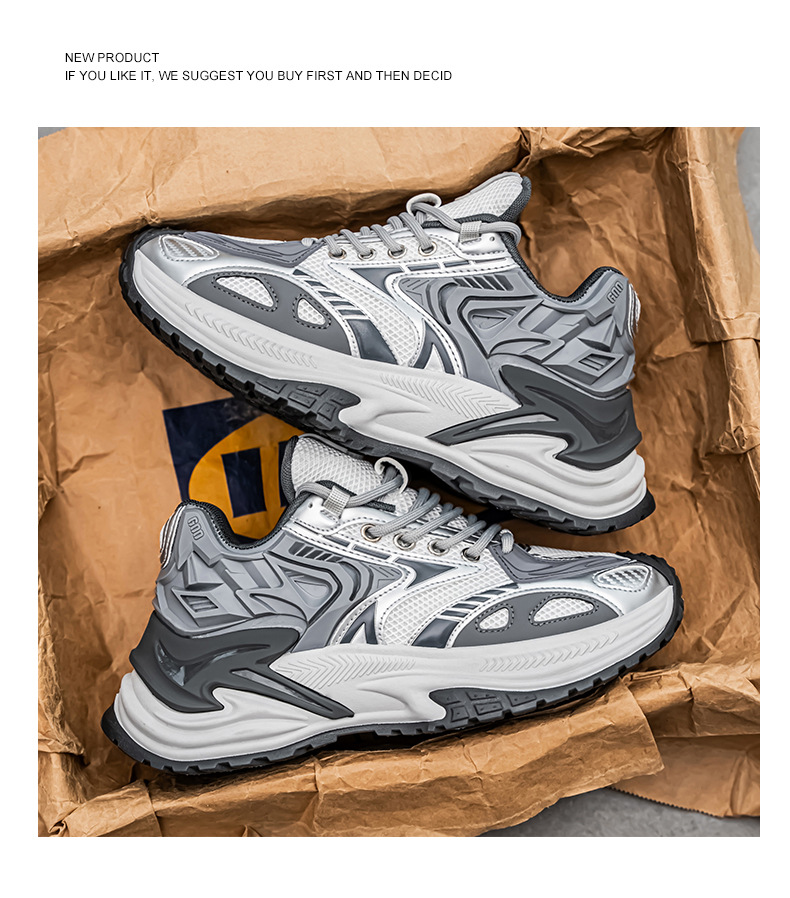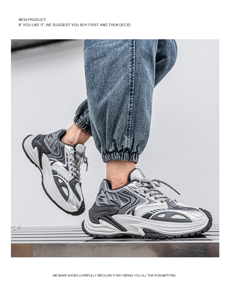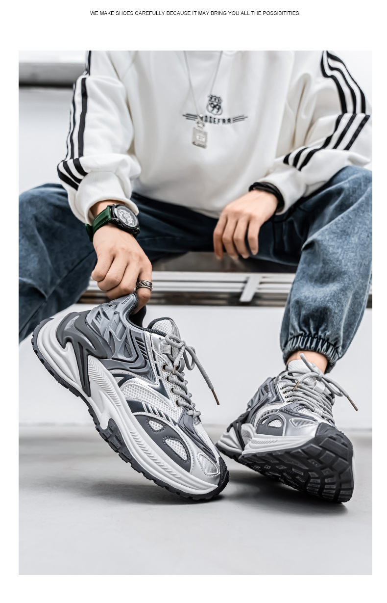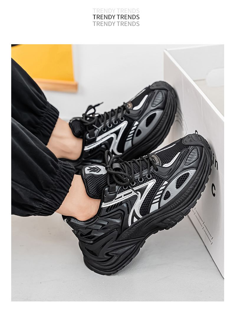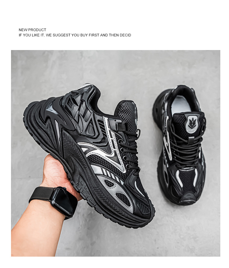 机甲网格透气休闲男鞋直播老爹鞋黑武士运动户外鞋