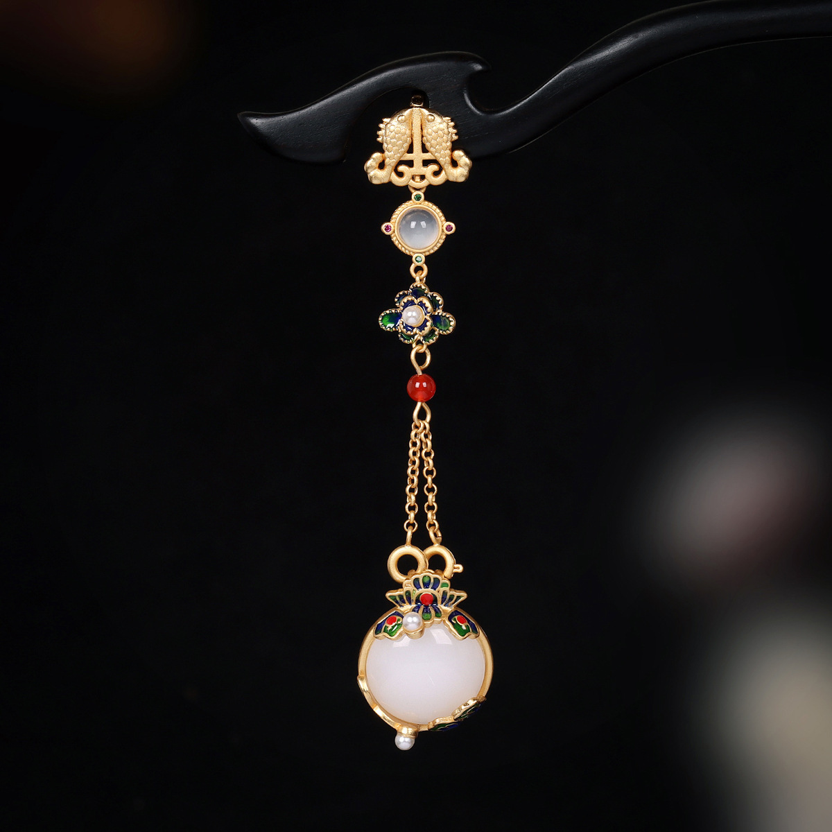 中国风复古旗袍珐琅压襟扣金色仿和田玉中式吊坠挂件两用款胸饰
