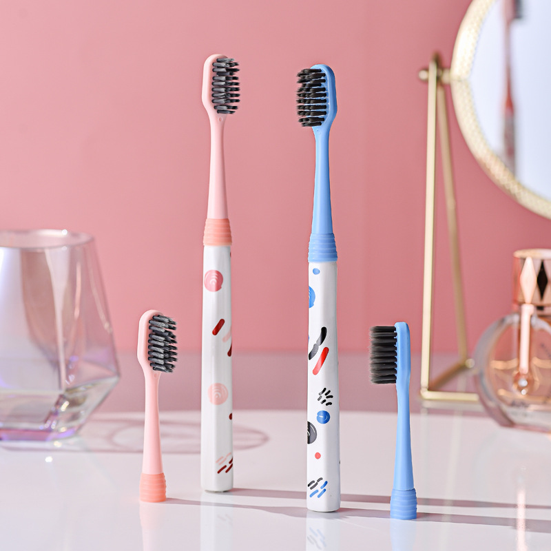 环保替换刷头成人牙刷陶瓷印花手柄小头超细软毛圆孔密植洁齿护龈