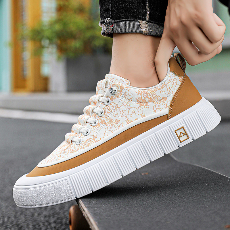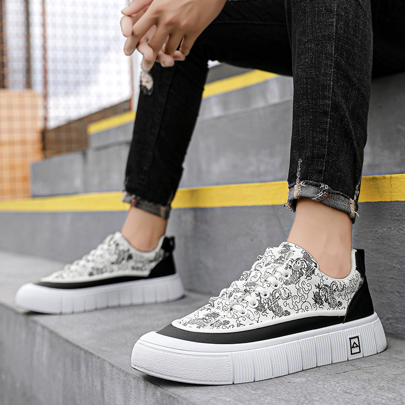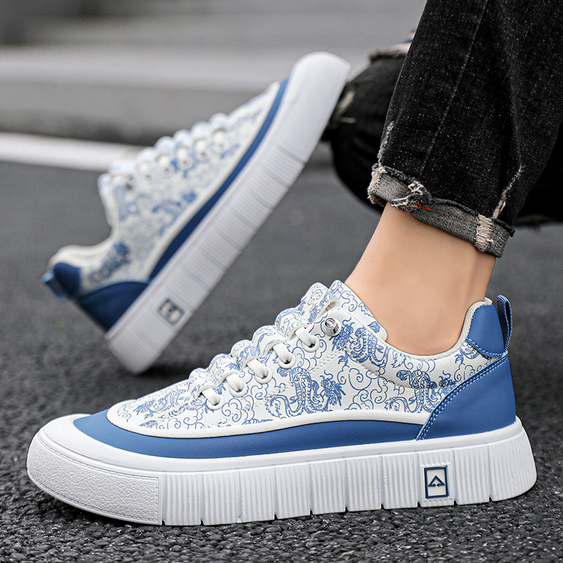 中国龙板鞋男迷彩花布透气新款潮流冰丝布男鞋直播休闲鞋