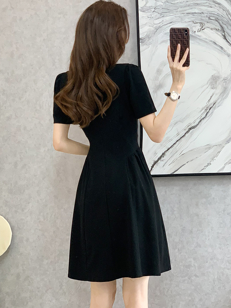 法式泡泡袖黑色连衣裙女薄款赫本风小黑裙收腰显瘦字裙夏款遮肉