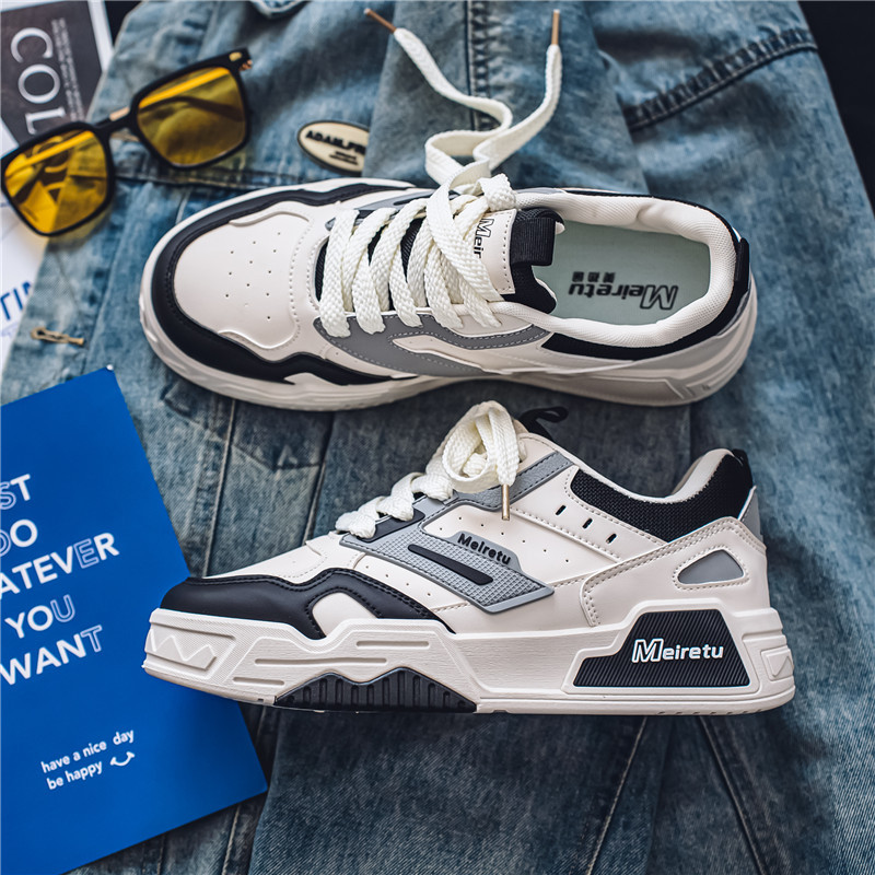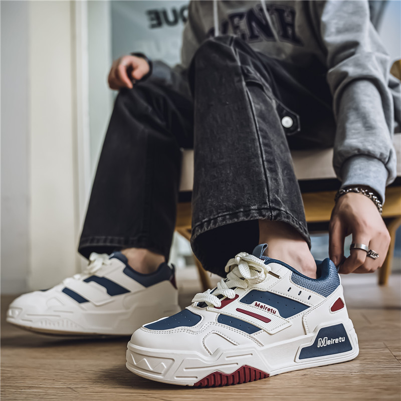 国潮风秋四季直播小众厚底ins原宿风板鞋港风皮面透气休闲男