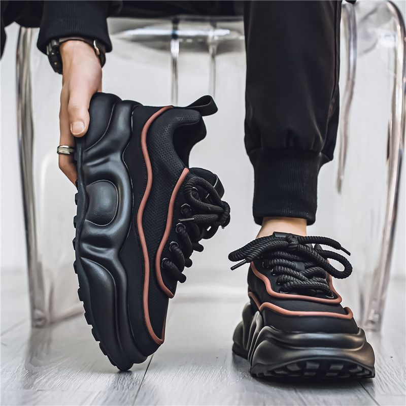 四季直播款黑武士网面透气跑步鞋厚底工装小白鞋老爹运动鞋男