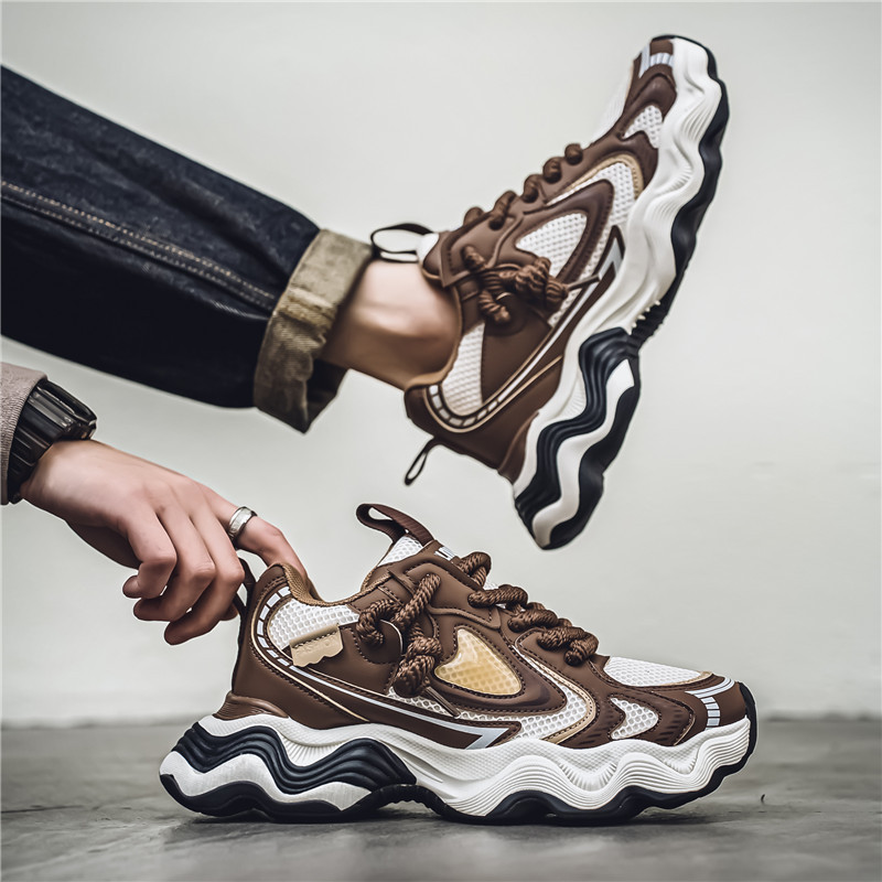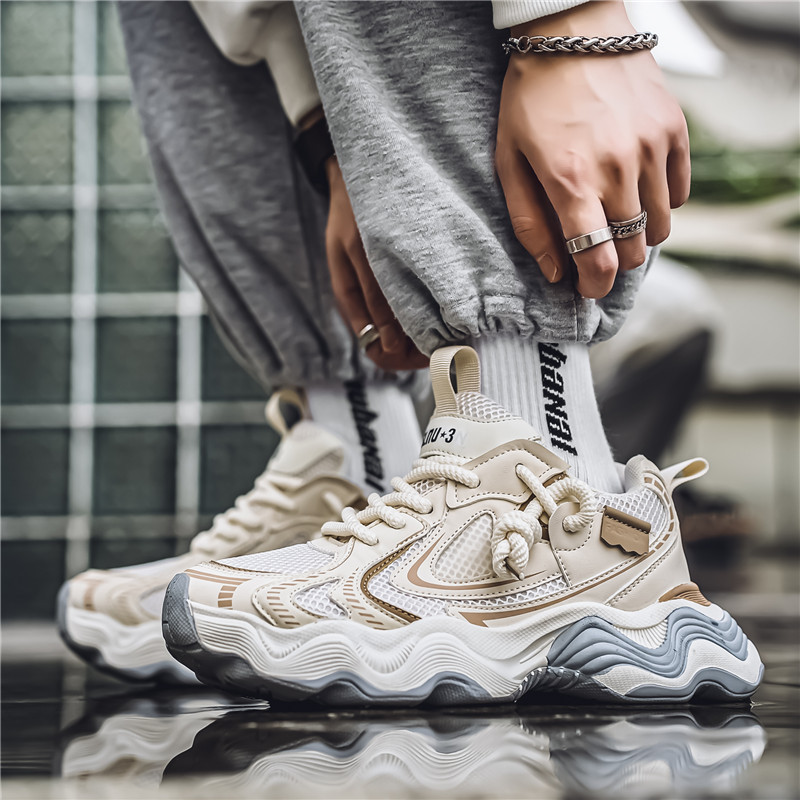 四季直播运动网面休闲男鞋厚底潮搭老爹鞋青年户外运动登山鞋