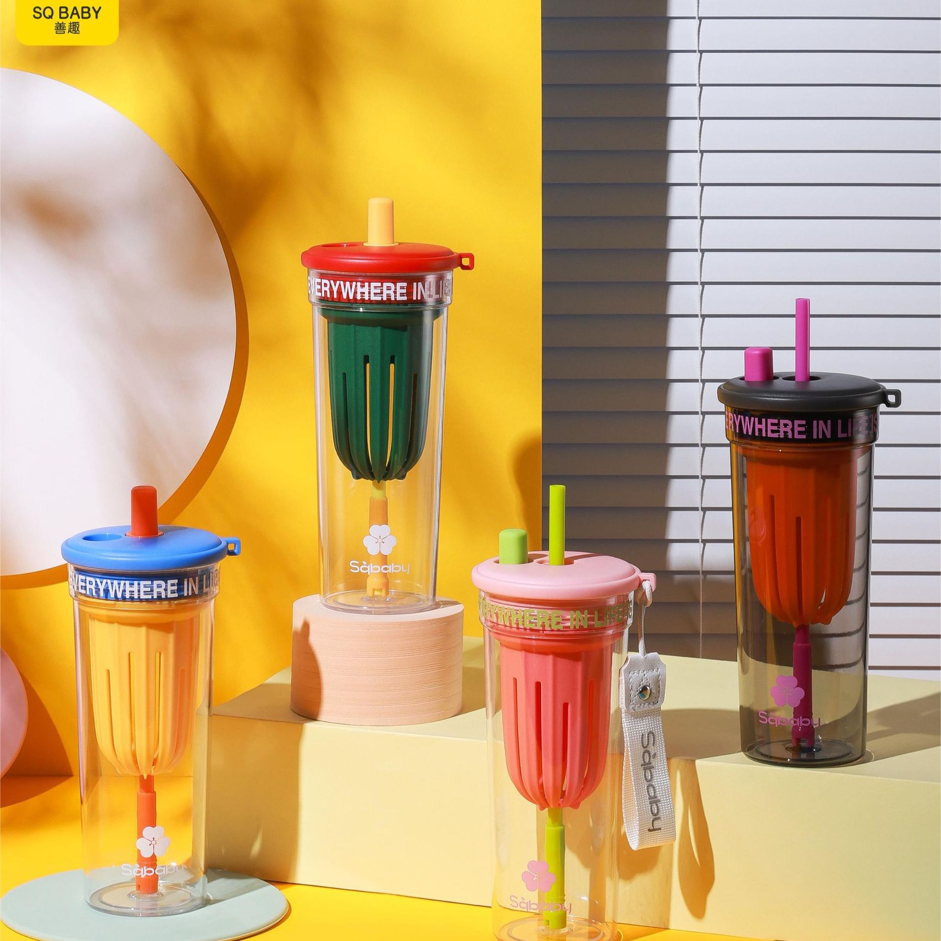 善趣水杯大容量女生便携吸管杯高颜值茶水分离泡茶tritan杯子夏