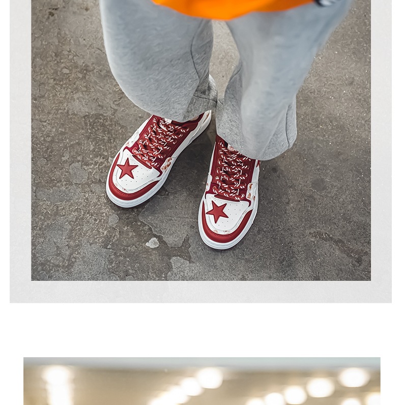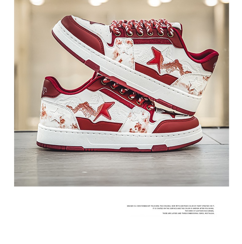 男四季透气龙年中国红低帮学生乐福鞋厚底港风直播星星压花板鞋男
