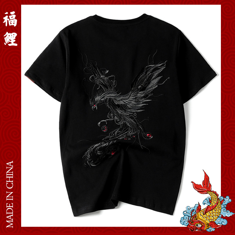 新款中国风凤凰刺绣T恤男纯棉半袖潮流情侣装宽松短袖t恤男