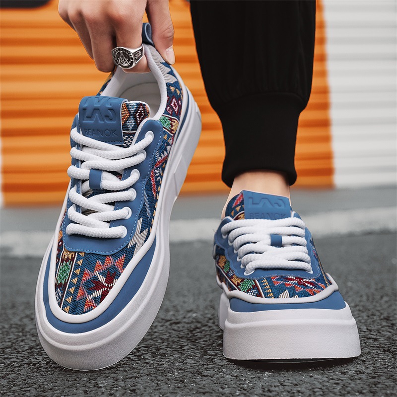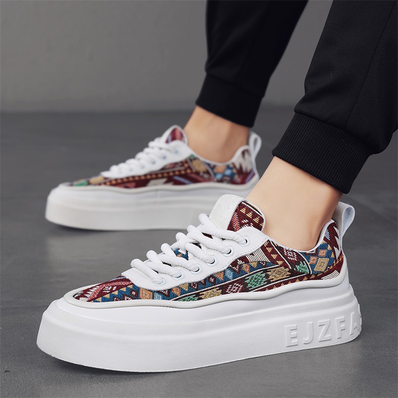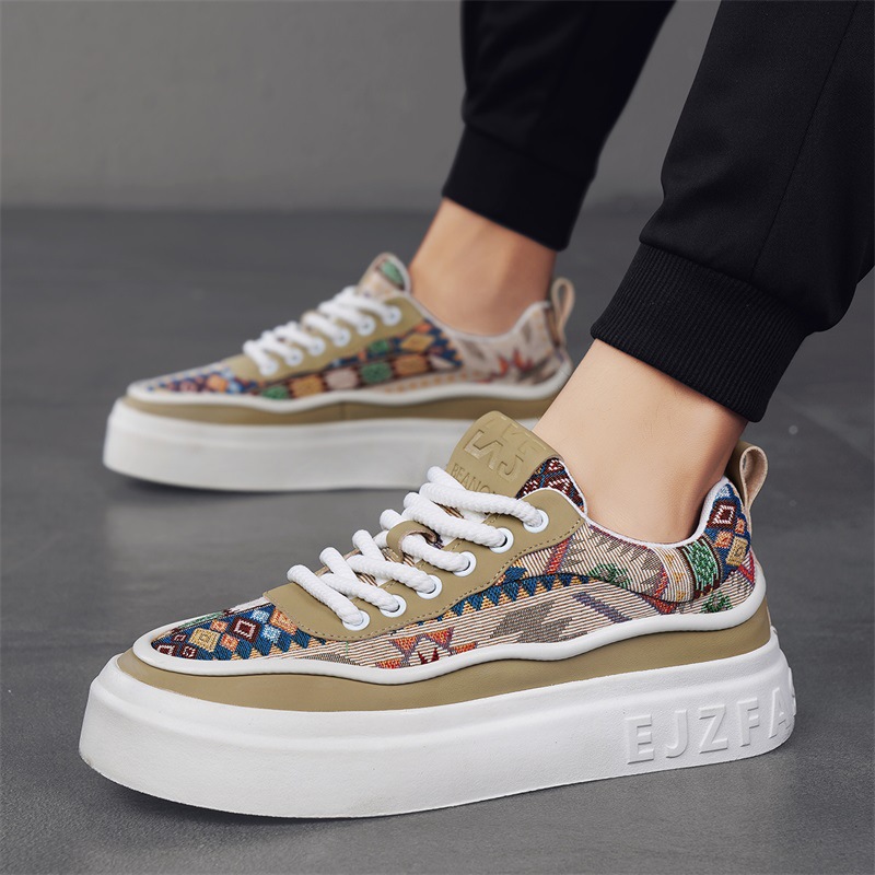 民族风乱花迷彩国潮运动板鞋男低帮直播学生户外走秀潮鞋