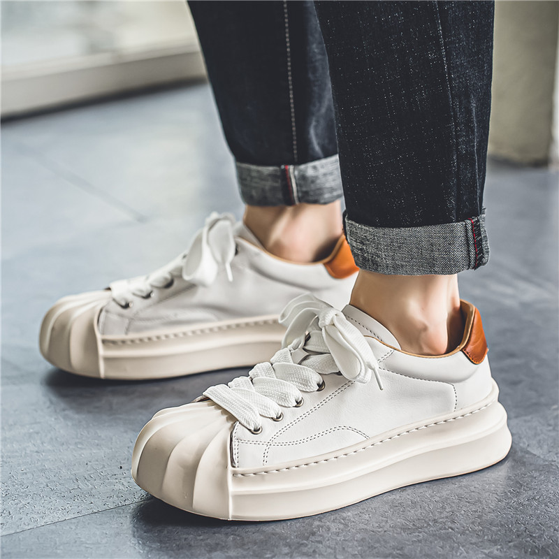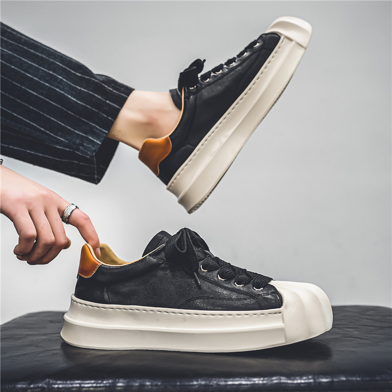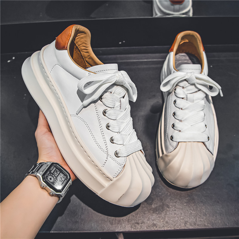 皮面厚底直播透气板鞋复古抖音直播港风贝壳头走秀工装鞋批发