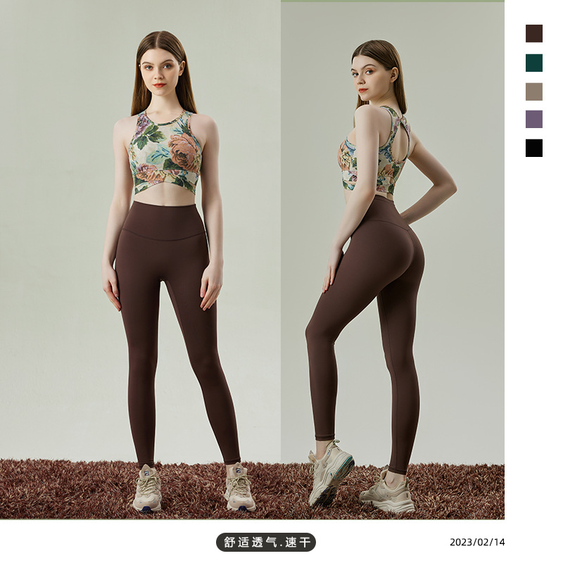 新款复古国风印花瑜伽服高强度背心带胸垫吊带运动美背普拉提春夏