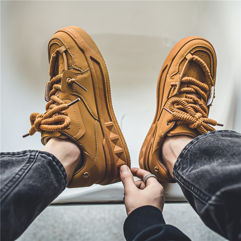 国潮风春款直播小众厚底ins增高板鞋港风透气面包鞋