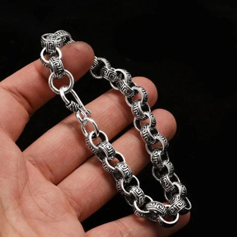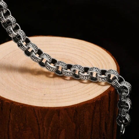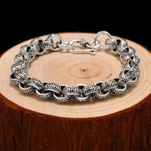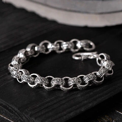 S925纯银手链男潮流粗款手环泰银手饰品复古霸气银链送男朋友礼物