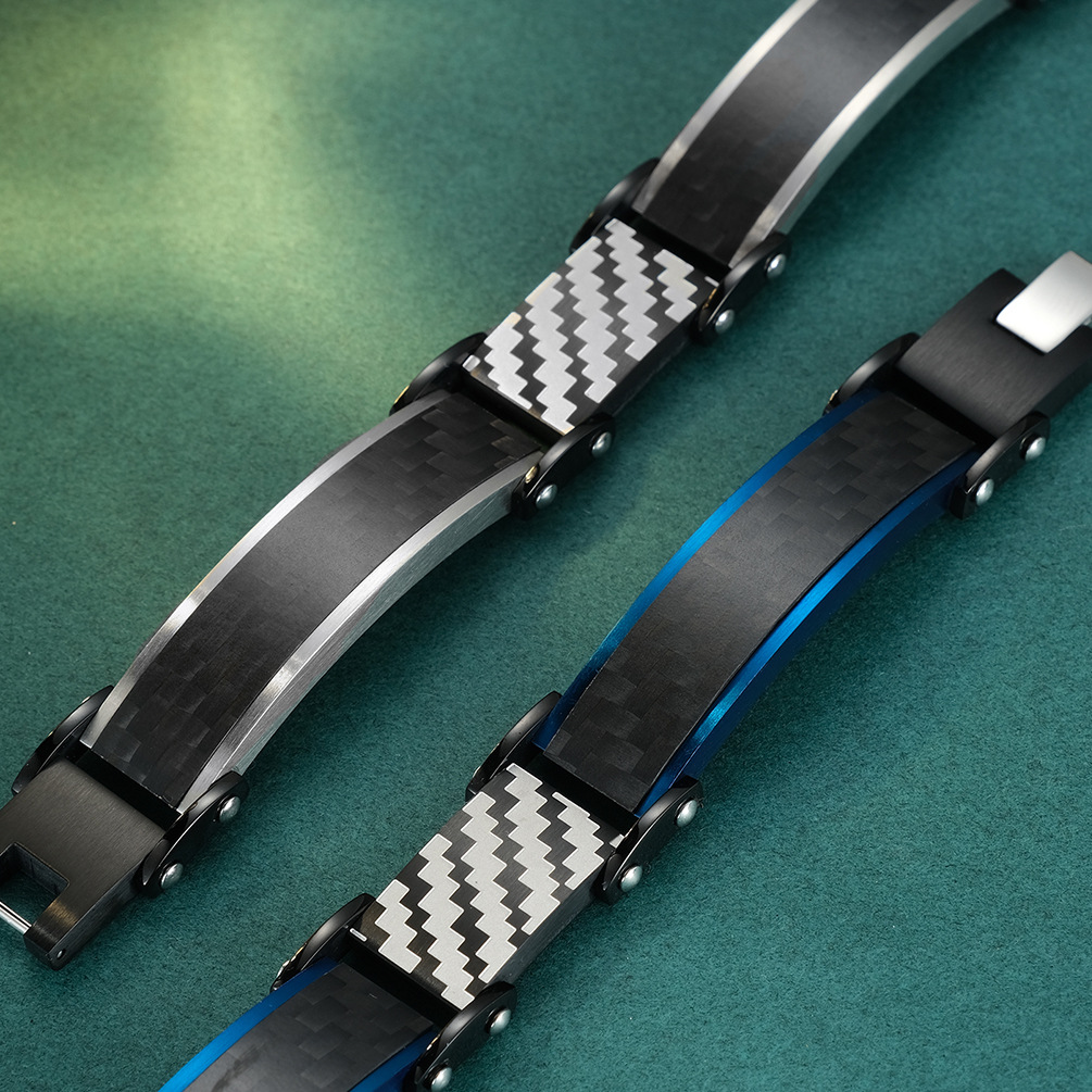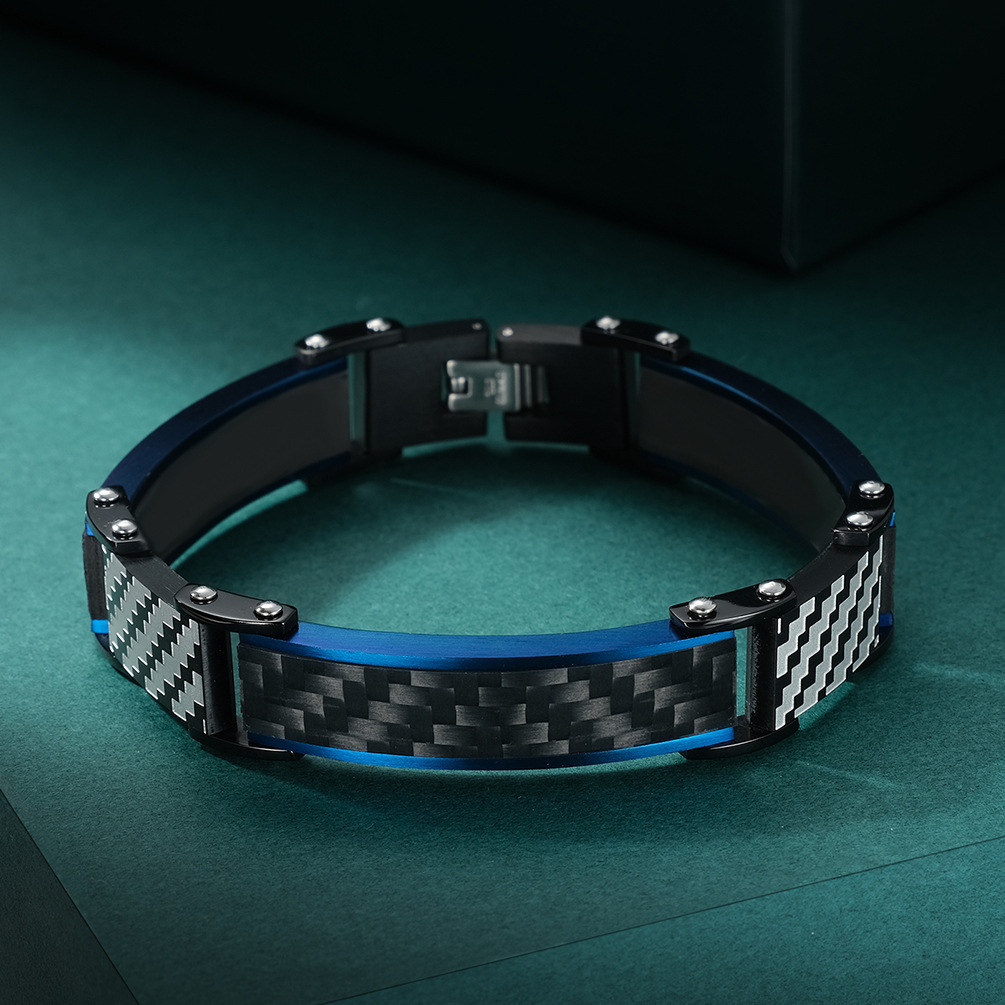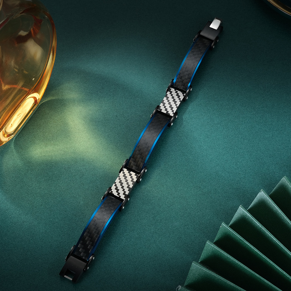 欧美新款个性男士固体碳纤维手链不锈钢男士手饰 潮男钛钢手链
