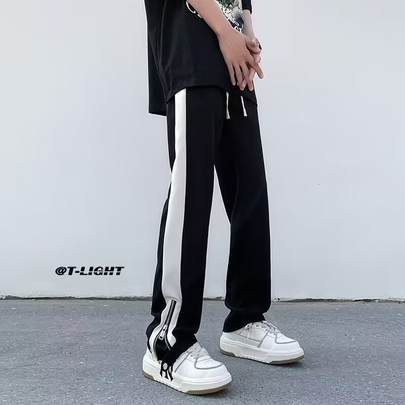 黑白条纹裤子男夏季美式vibe直筒裤男休闲长裤垂感西装裤男拖地裤