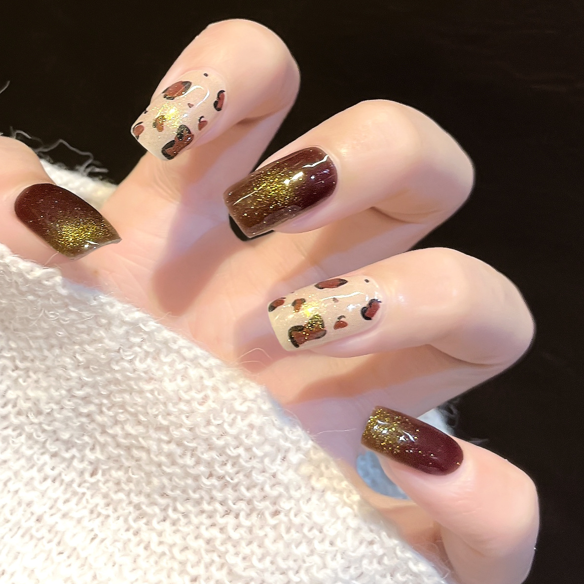 纯手工光疗穿戴甲酒红车厘子批发成品重复使用美甲贴片可拆卸猫