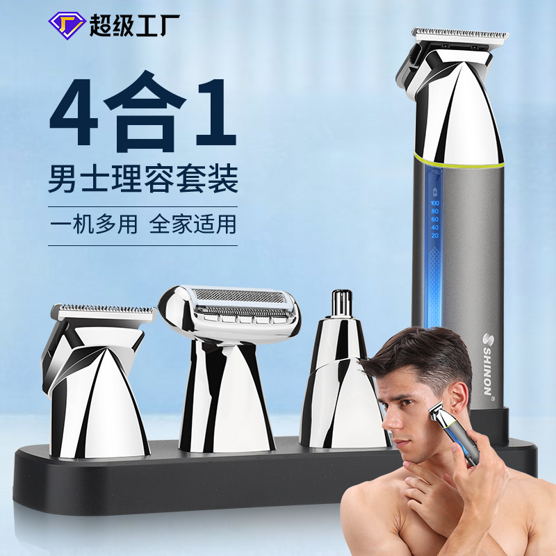 SHEIN欧美男士4合1多功能理发器LED数显电推剪鼻毛器剃须刀套装