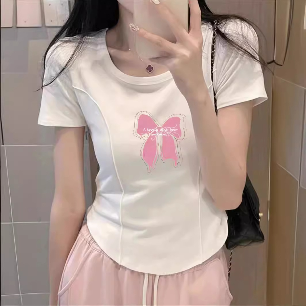纯棉重磅正肩紧身不规则弧形下摆短袖t恤女夏小个子掐腰显瘦上衣