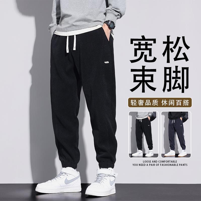夏季新款运动裤男士宽松百搭时尚潮流纯色简约显瘦休闲束脚九分裤