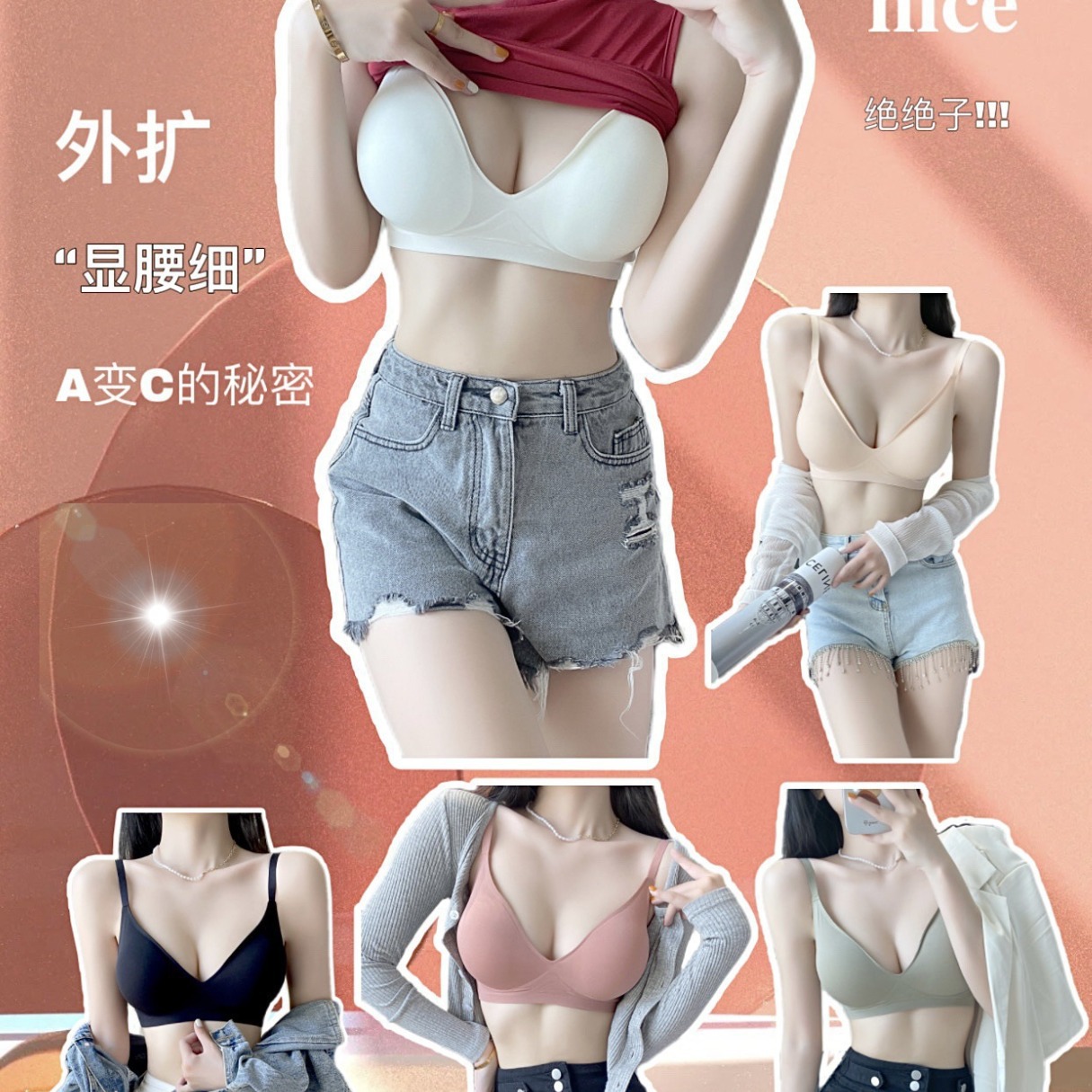 纯色裸感果冻无痕文胸女漫画身材显胸外扩配三个杯垫舒适立体罩杯