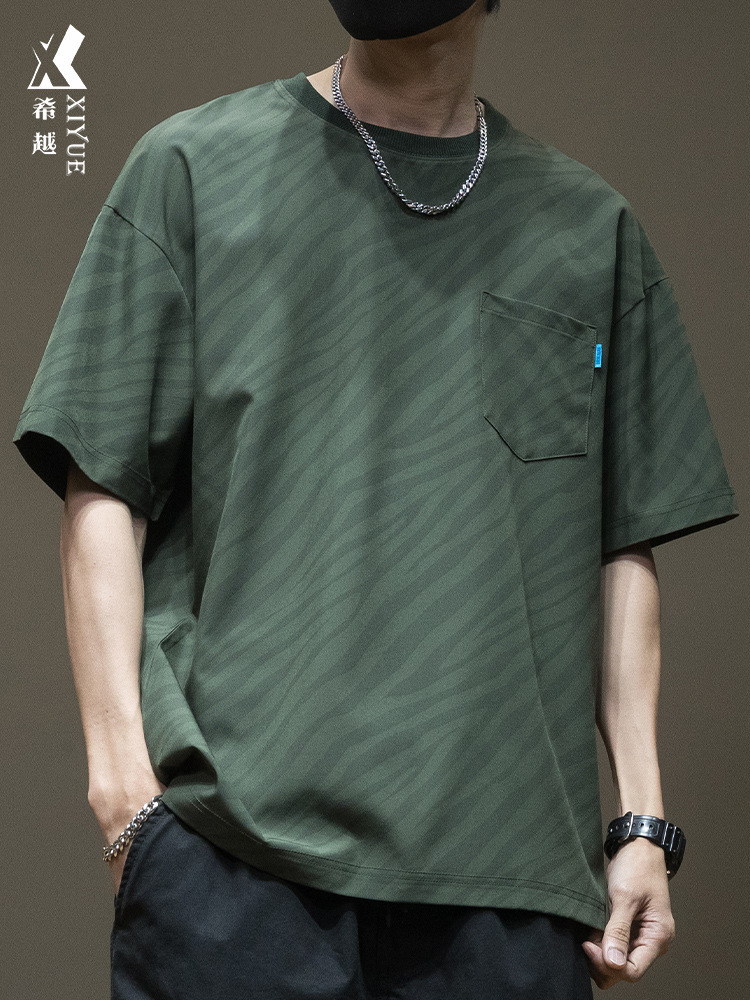 夏季冰丝短袖T恤男薄款速干带口袋上衣男士加肥加大胖子大码半袖