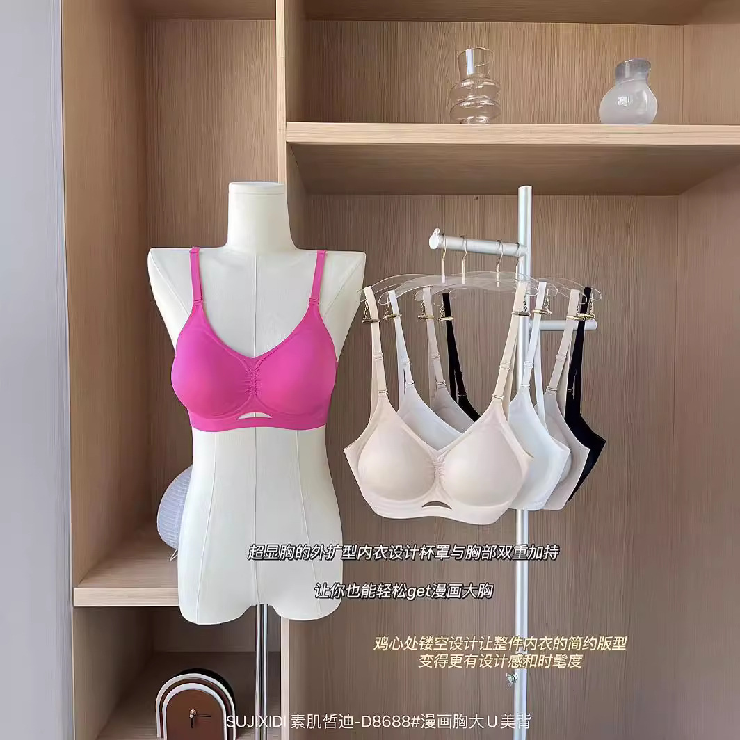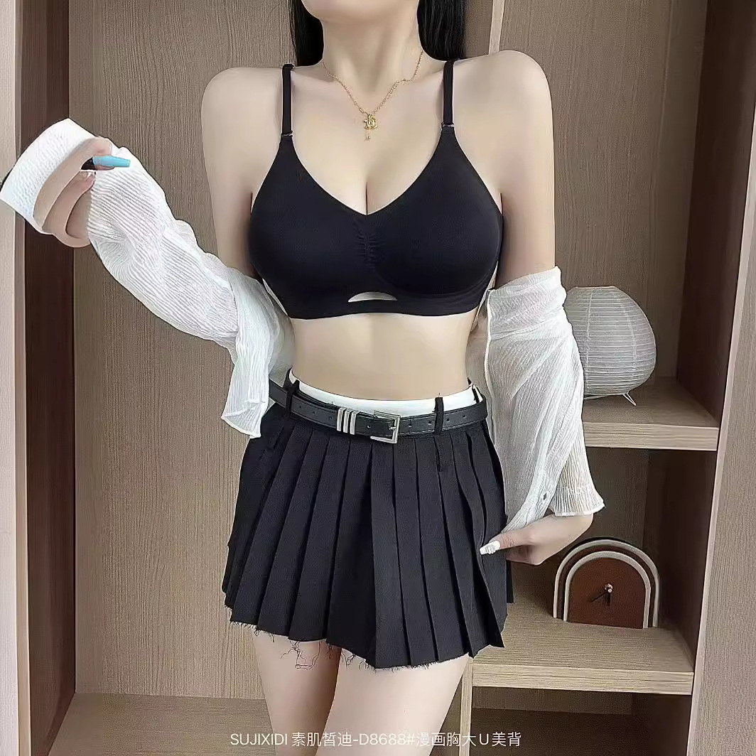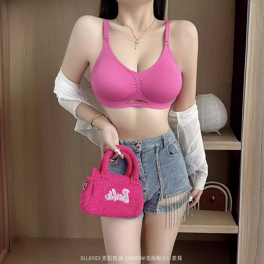 夏季外扩大U美背文胸女无钢圈性感肩带交叉挂脖式果冻蜜桃软支撑