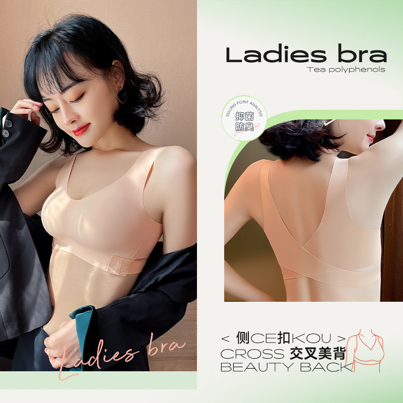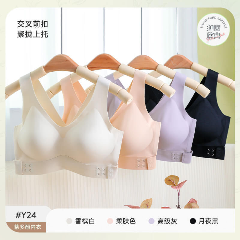 新款交叉双排扣内衣无钢圈聚拢上托收副乳前排扣美背背心式文胸女