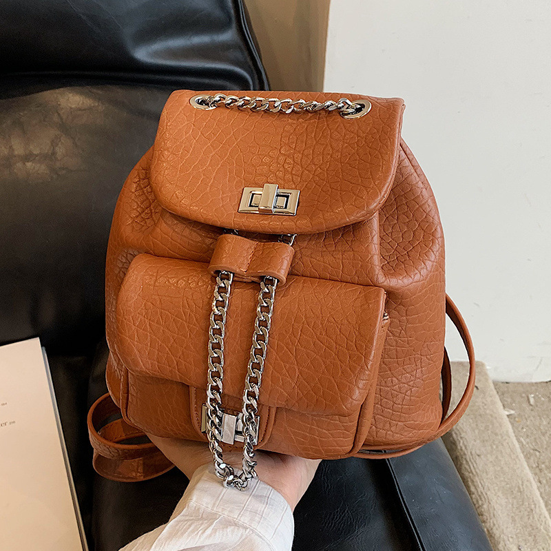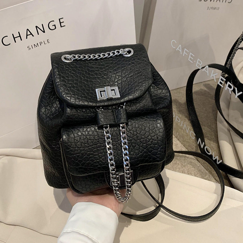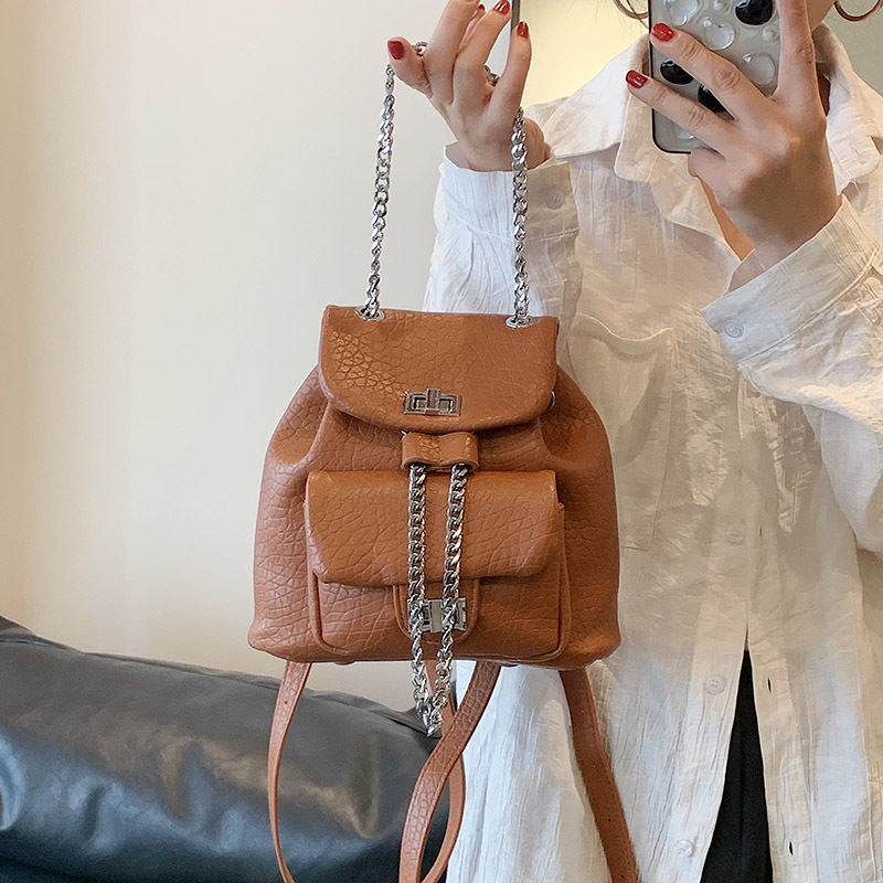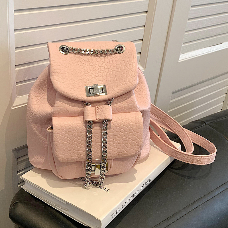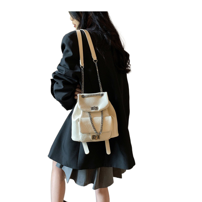 韩系小包包新款链条双肩包女高级感小众百搭外出上课水桶背包
