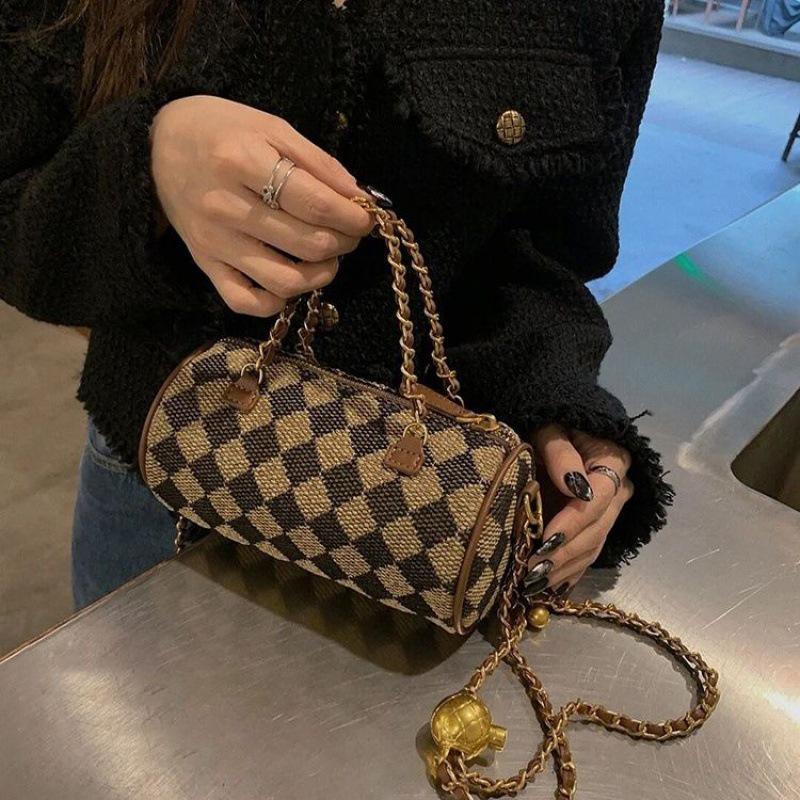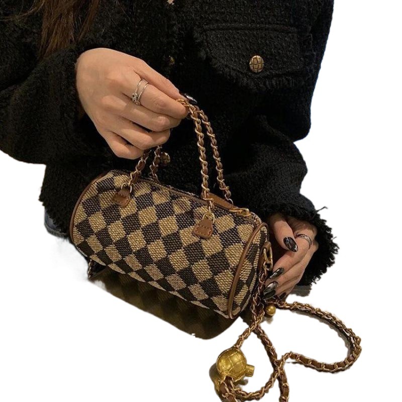 小年纹珠枕头包夏天小挎包手提单肩圆筒包女