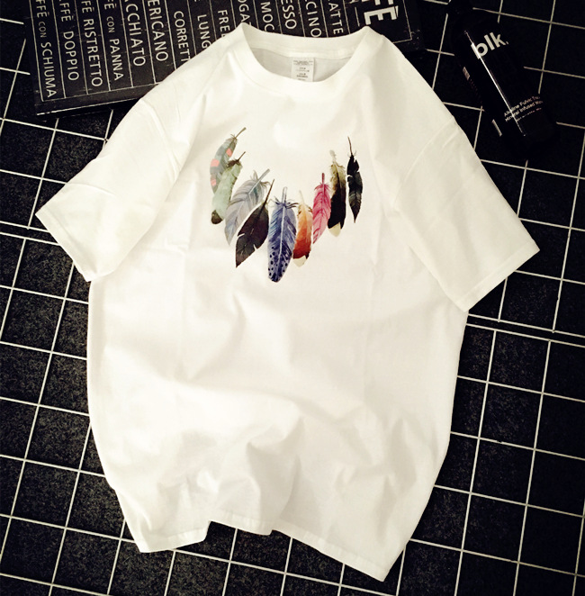 潮牌情侣装 日系羽毛印花短袖男复古潮流学生