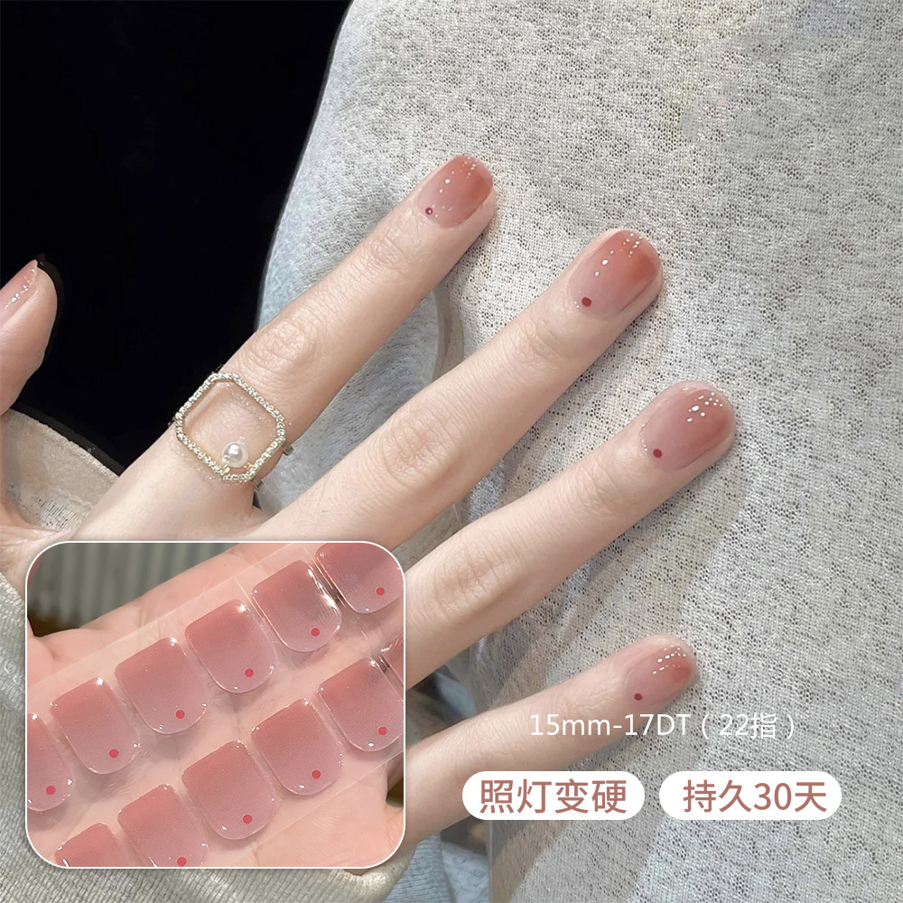 【15mm短甲型】17DT照灯变硬半固化uv凝胶美甲贴纸成品