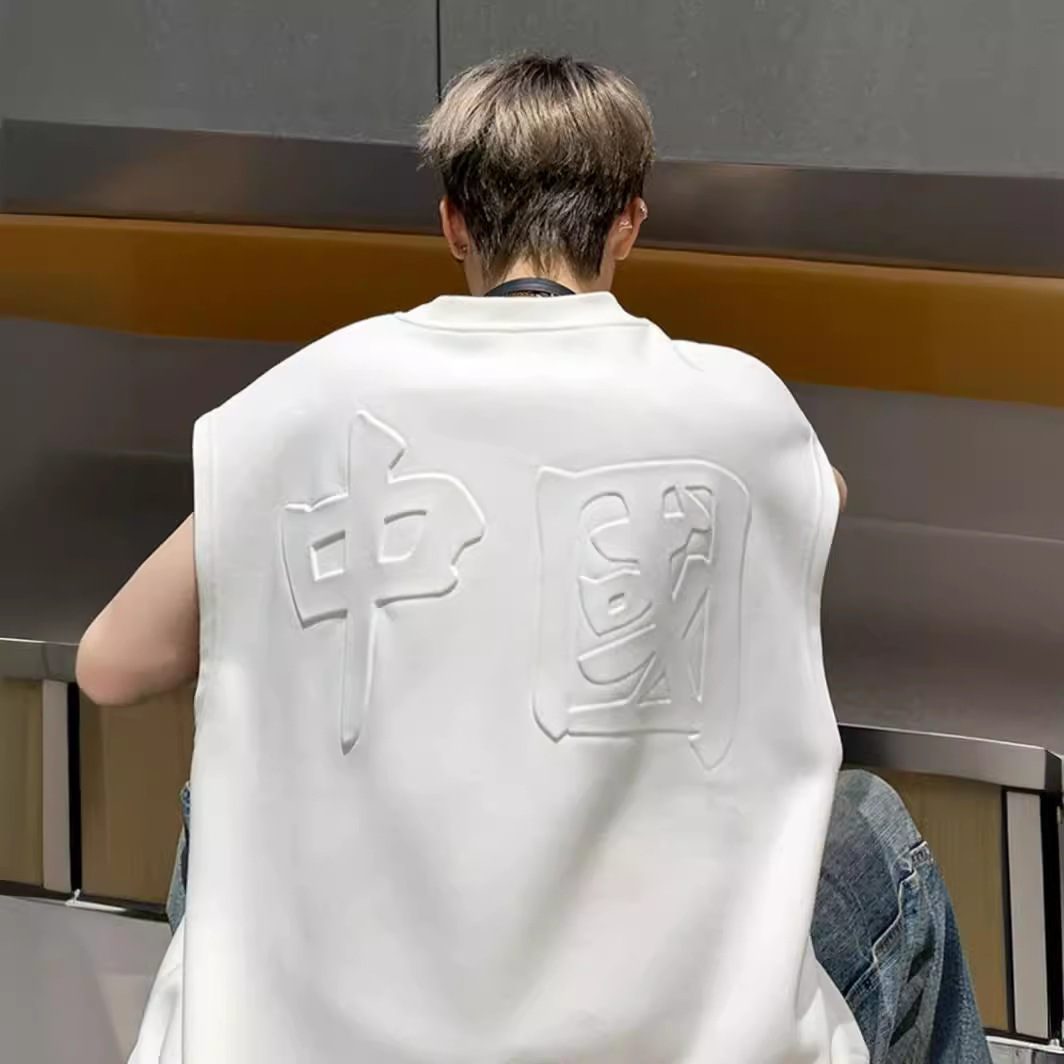 国潮牌无袖背心男夏季美式高街重磅痞帅宽松休闲百搭坎肩体恤