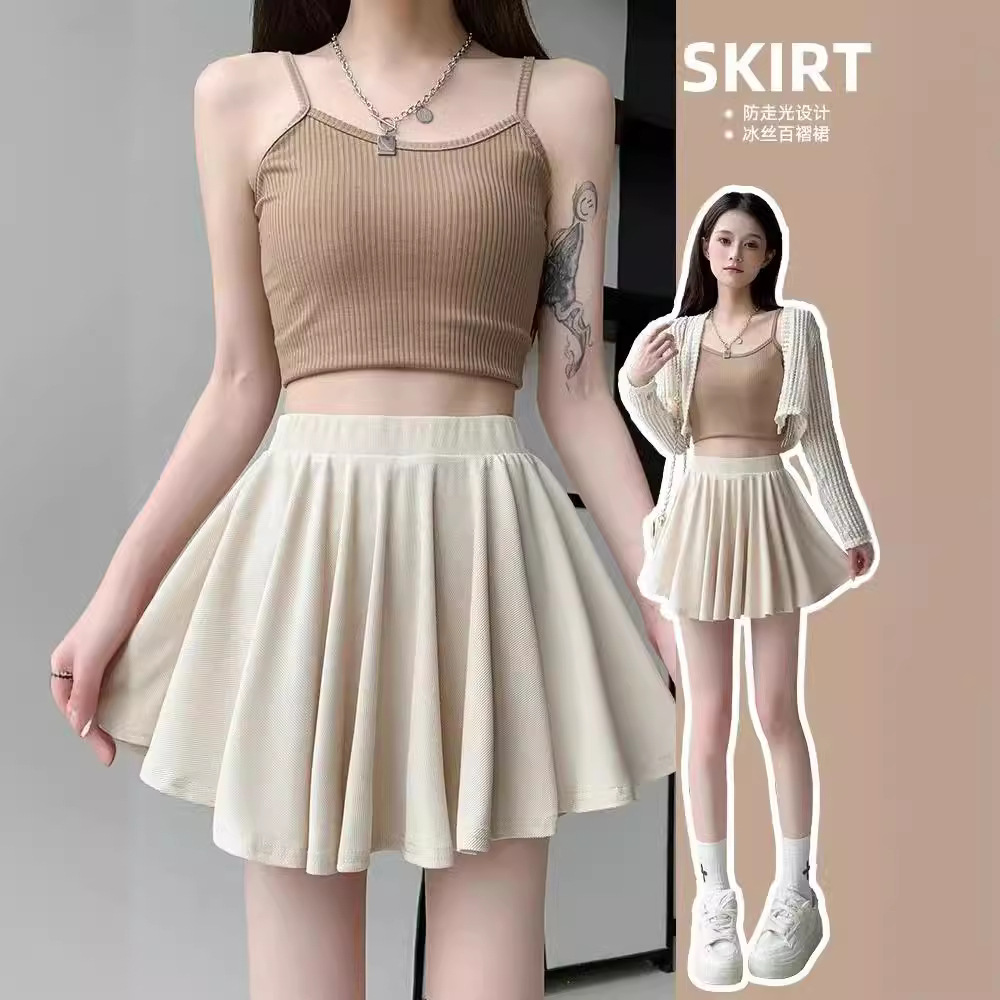 夏季小个子休闲运动短裤裙女韩版新款高腰显瘦A字芭蕾风百褶裙子