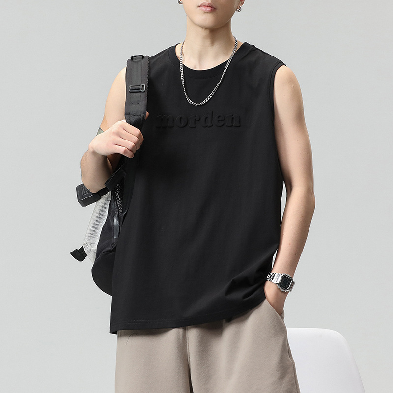 主推280克重磅Z8051无袖背心男士夏季日系压印宽松青年打底上衣