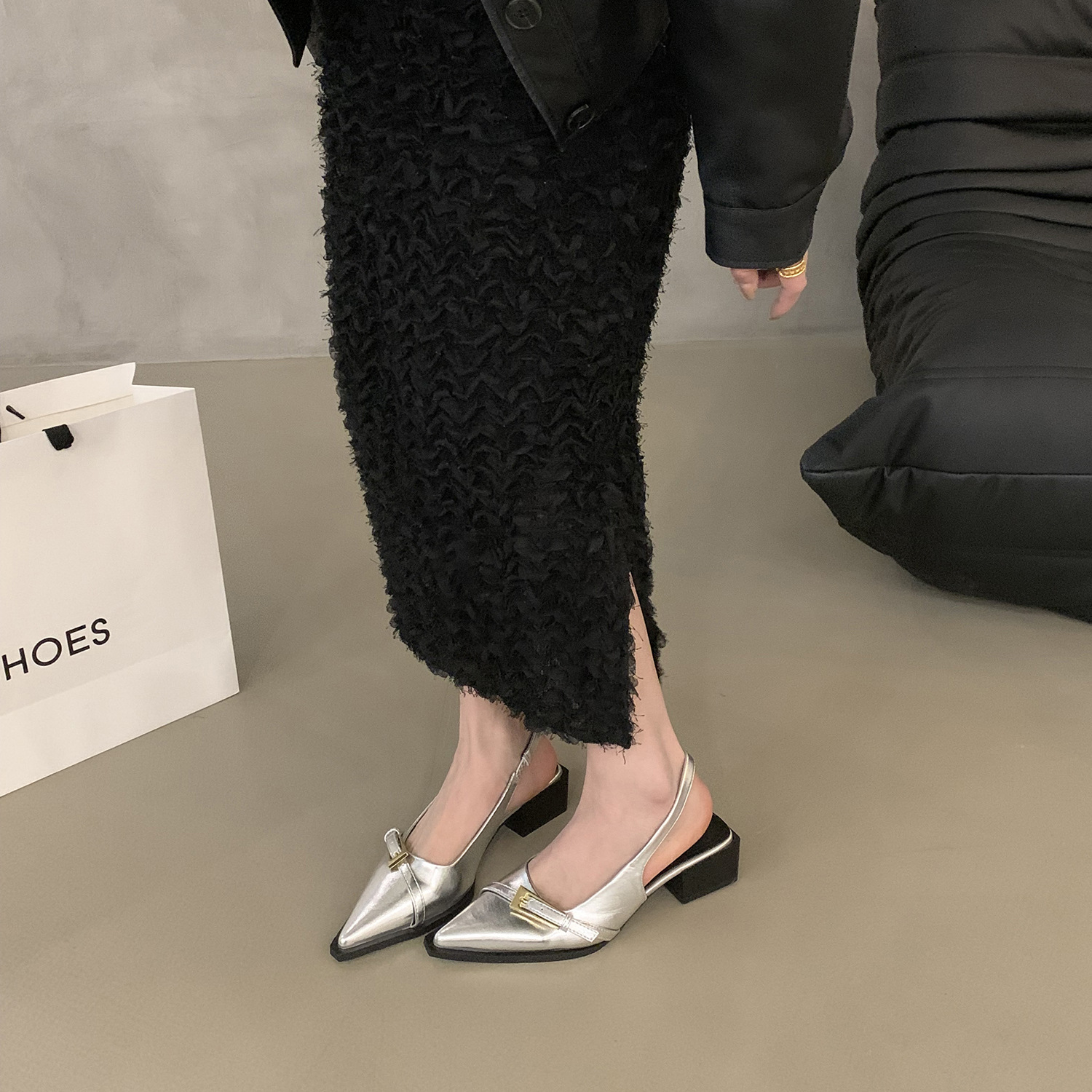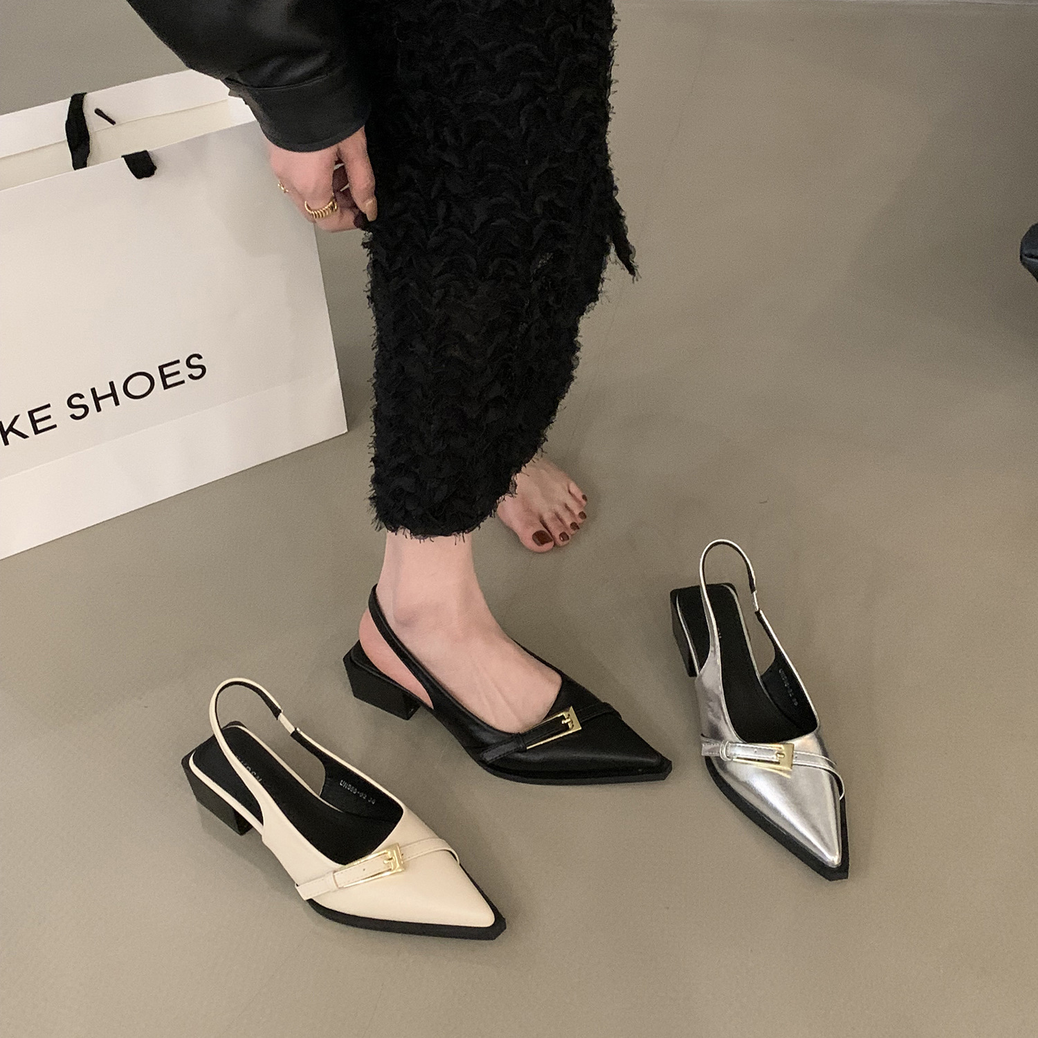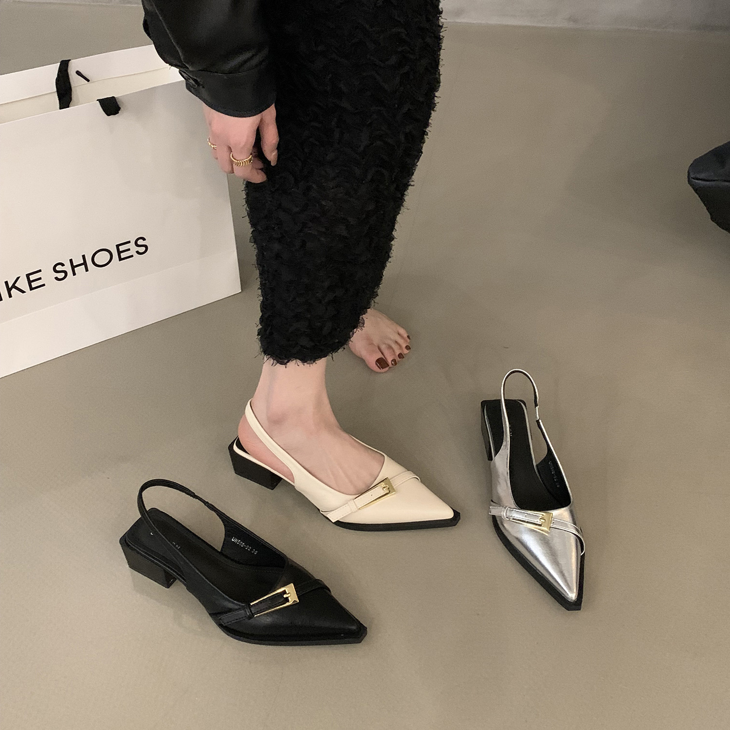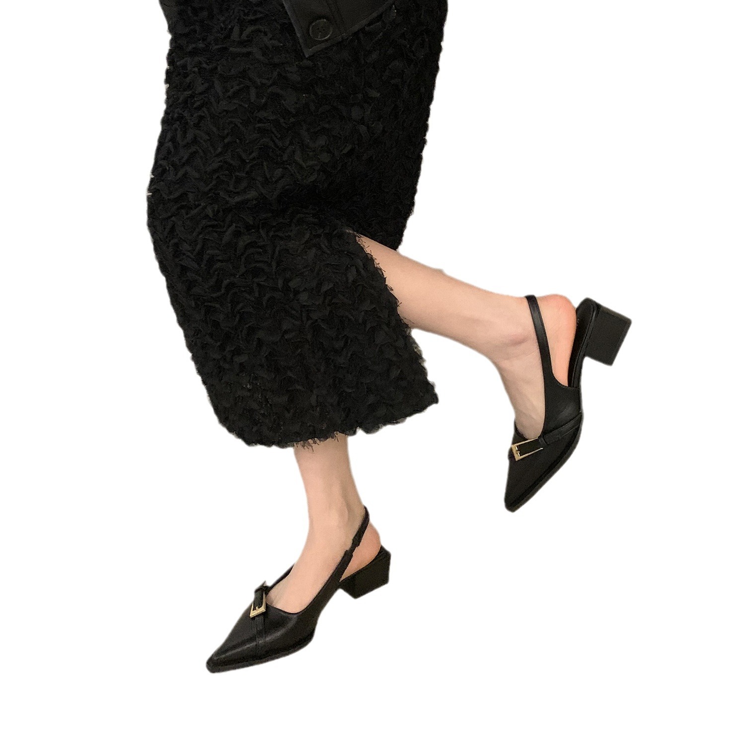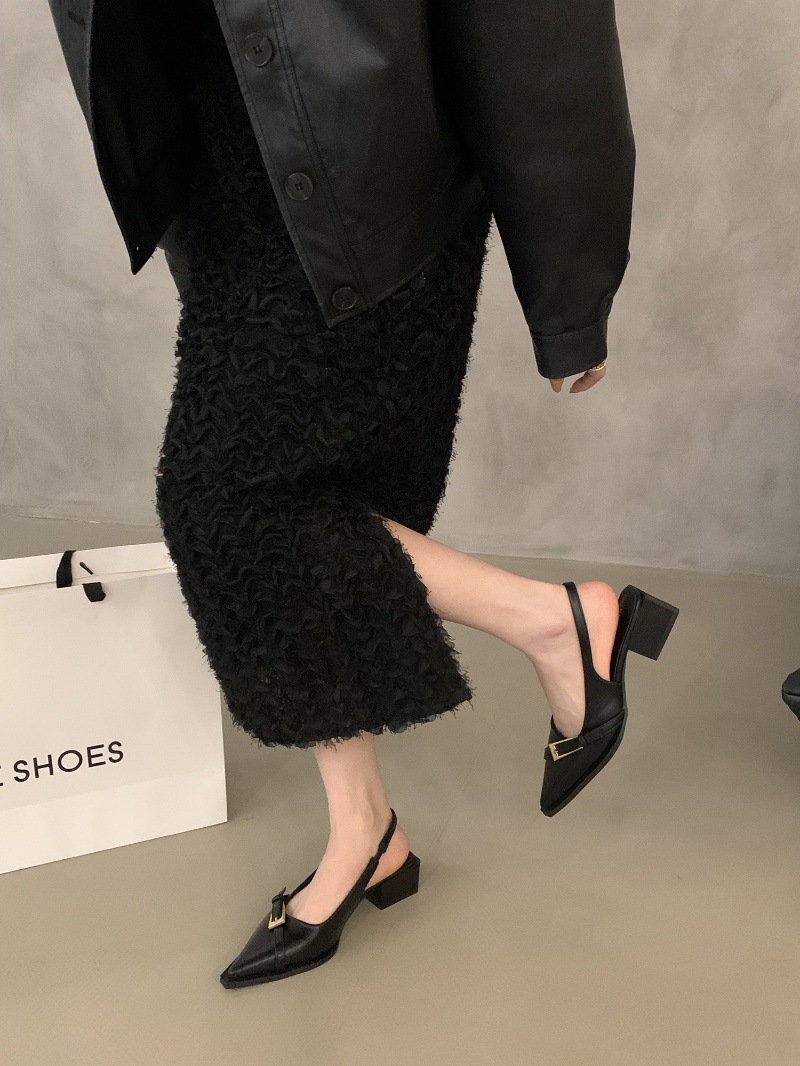 法式粗跟包头凉鞋仙女鞋子年新款春夏季法式小众黑色气质单鞋