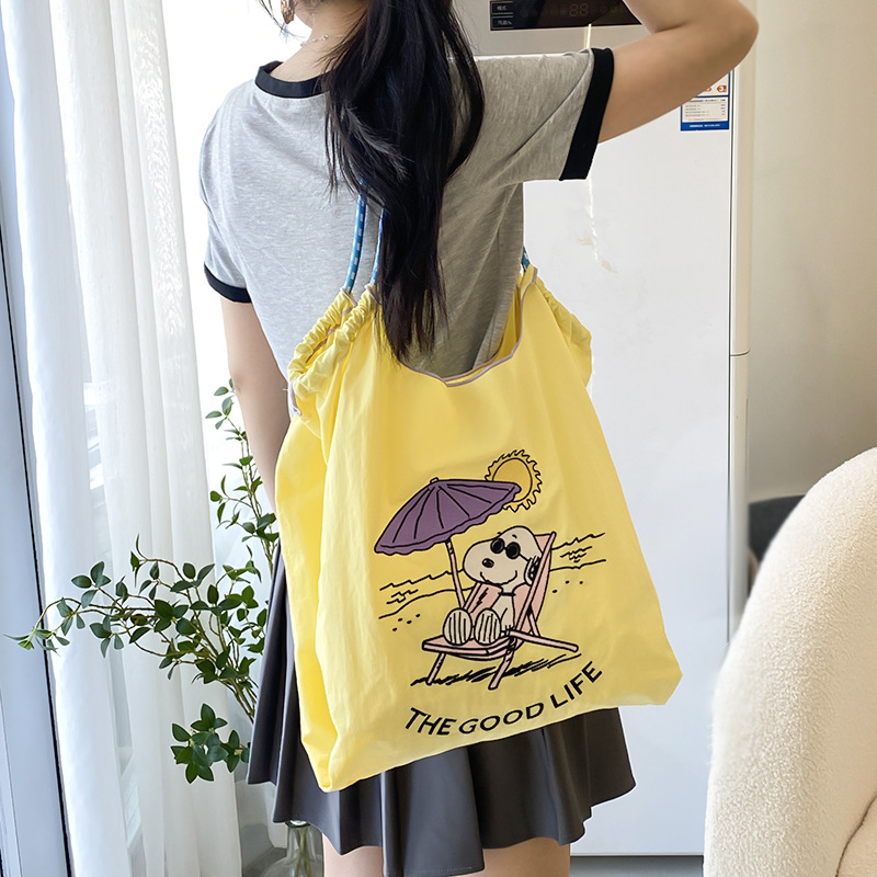 网红同款史努比多巴胺卡通新款学生单肩包包女刺绣大容量托特包