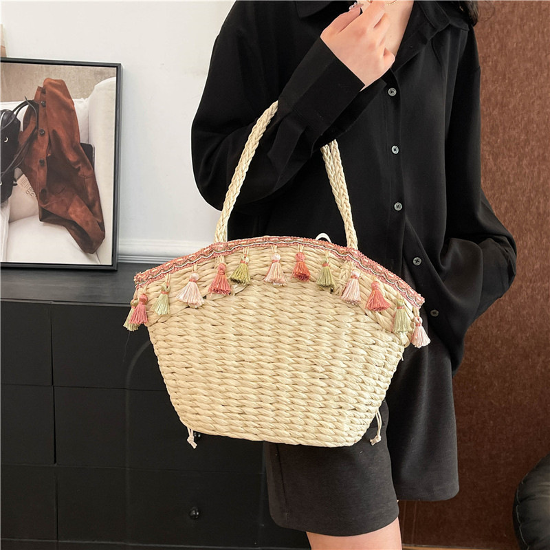 小清新草莓手提草编包新款纯色手拎大容量编织包度假沙滩包菜篮子