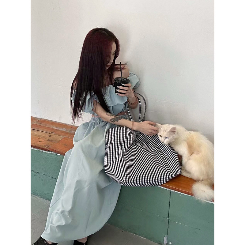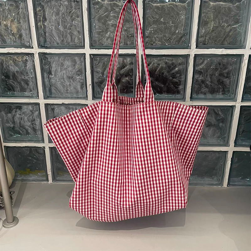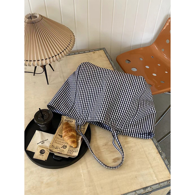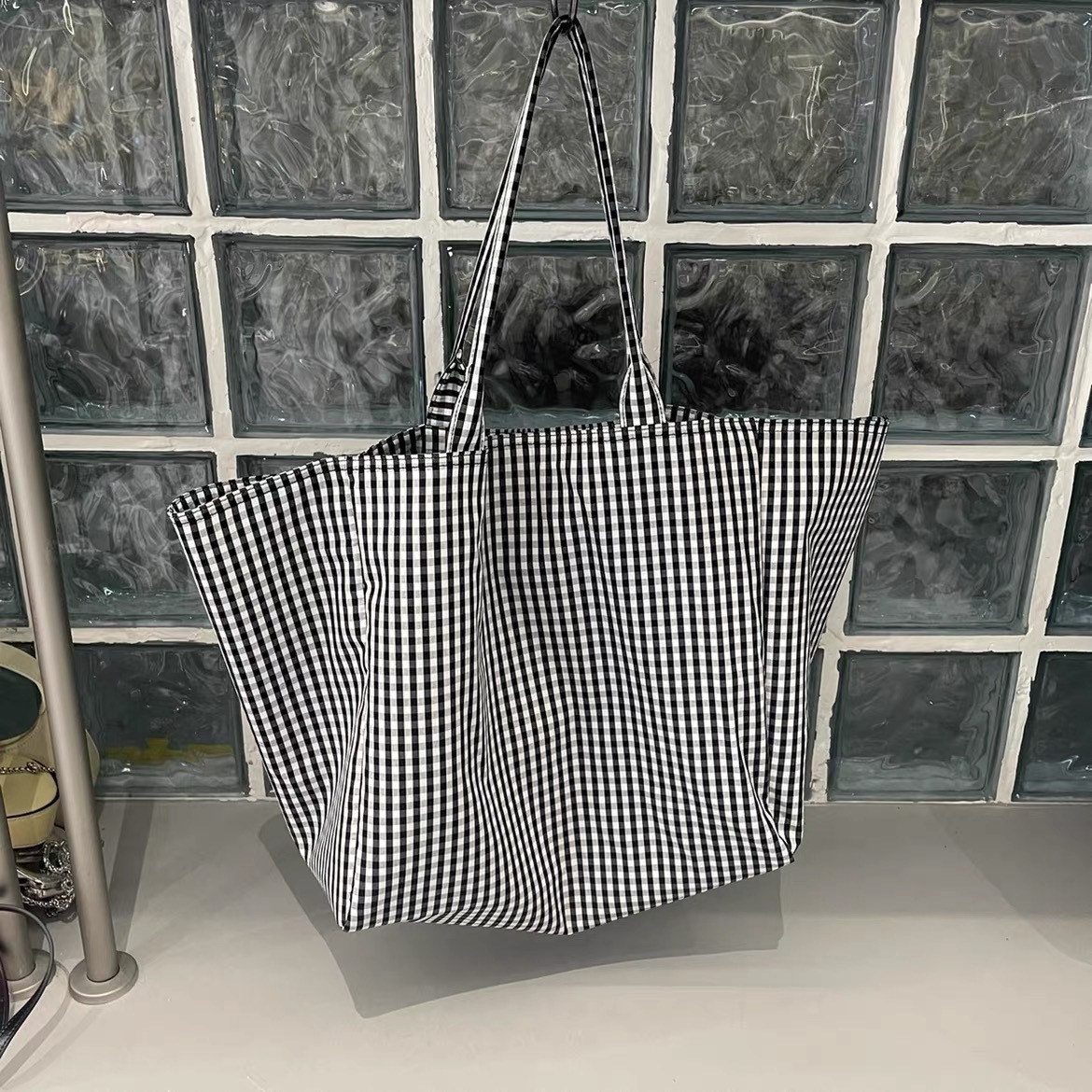 黑白格子帆布包大容量托特包包女休闲慵懒风购物袋轻便单肩包大包