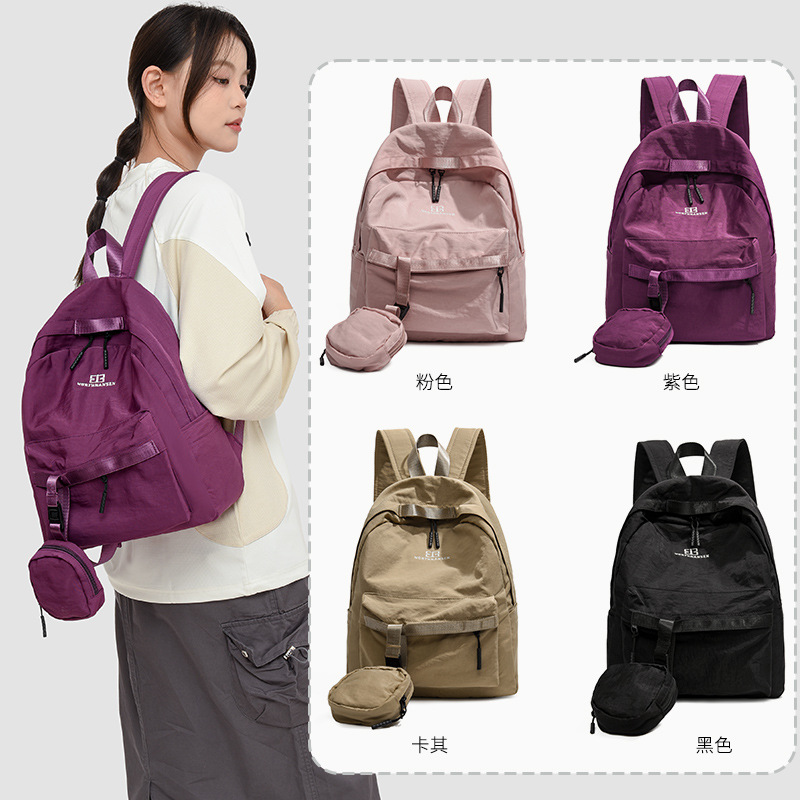 户外双肩包女2025新款简约纯色休闲大容量旅行背包百搭大书包
