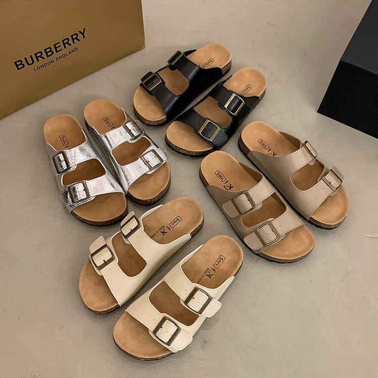 复古厚底双扣带沙滩拖鞋女鞋子夏外穿新款休闲平底一字凉拖鞋