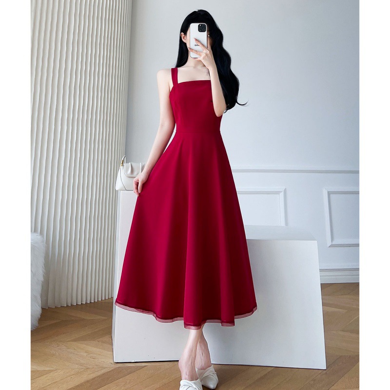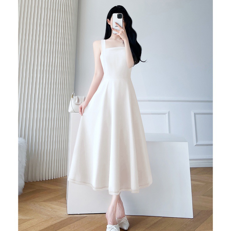 Hepburn style dress Summer French retro square neck black skinny maxi dress with a halter little black dress with a suit