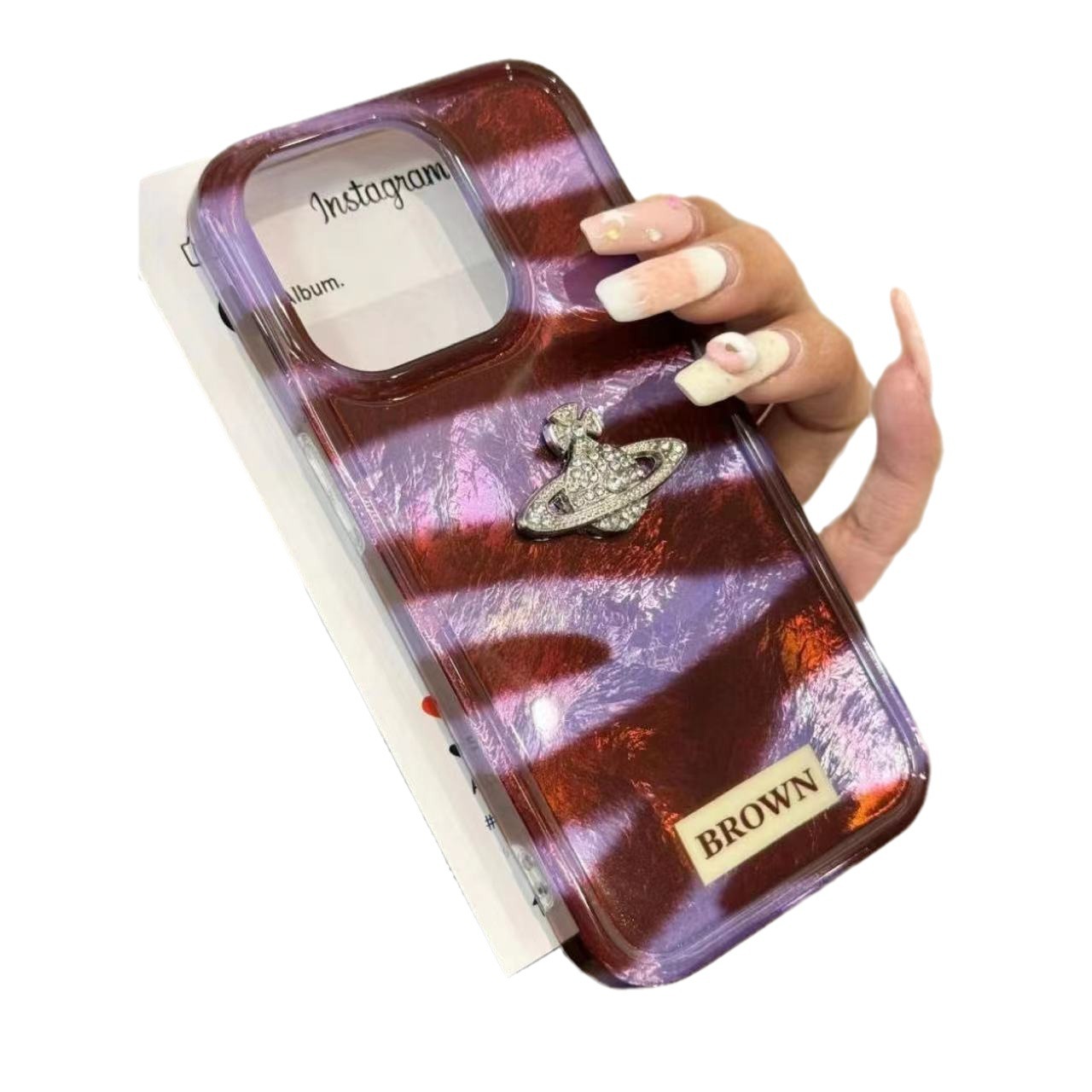 日韩紫棕斜纹星球适用iPhone15promax苹果14手机壳16新款12少女13