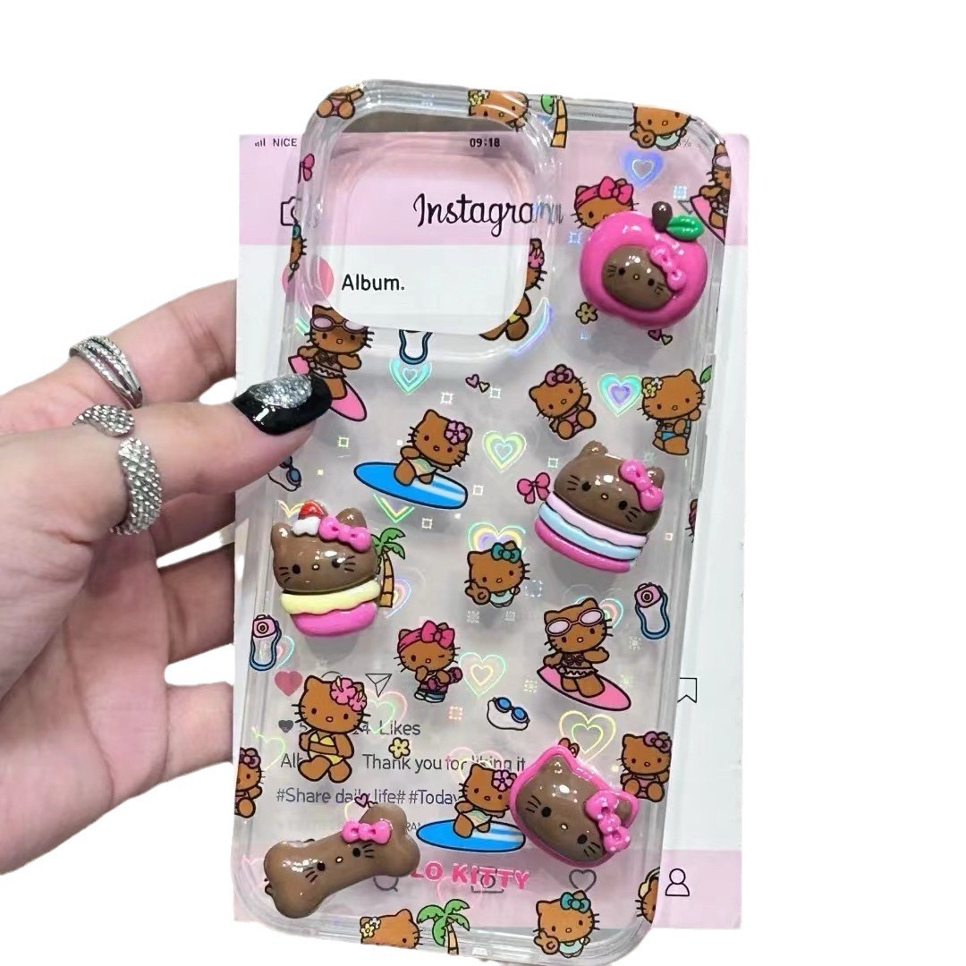 立体黑皮kitty冲浪公仔适用iPhone15promax苹果14手机壳12/13女11