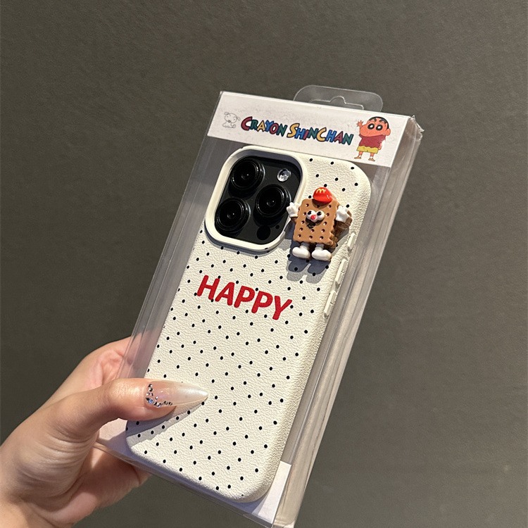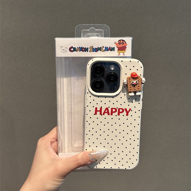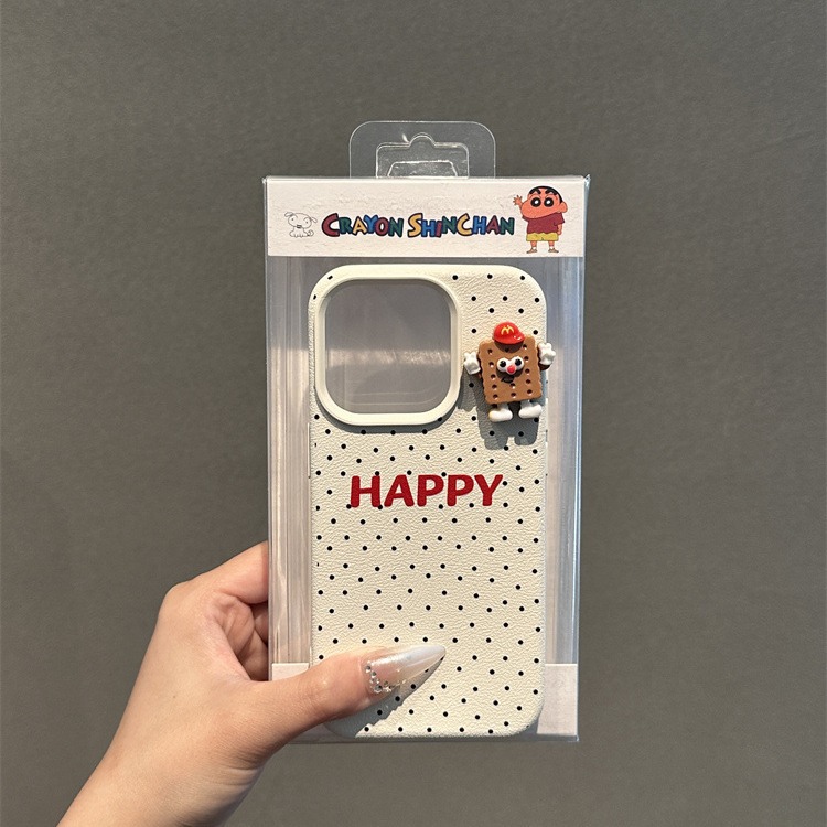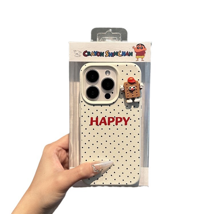 简约波点happy饼干适用iPhone15promax苹果14手机壳13新款12全包